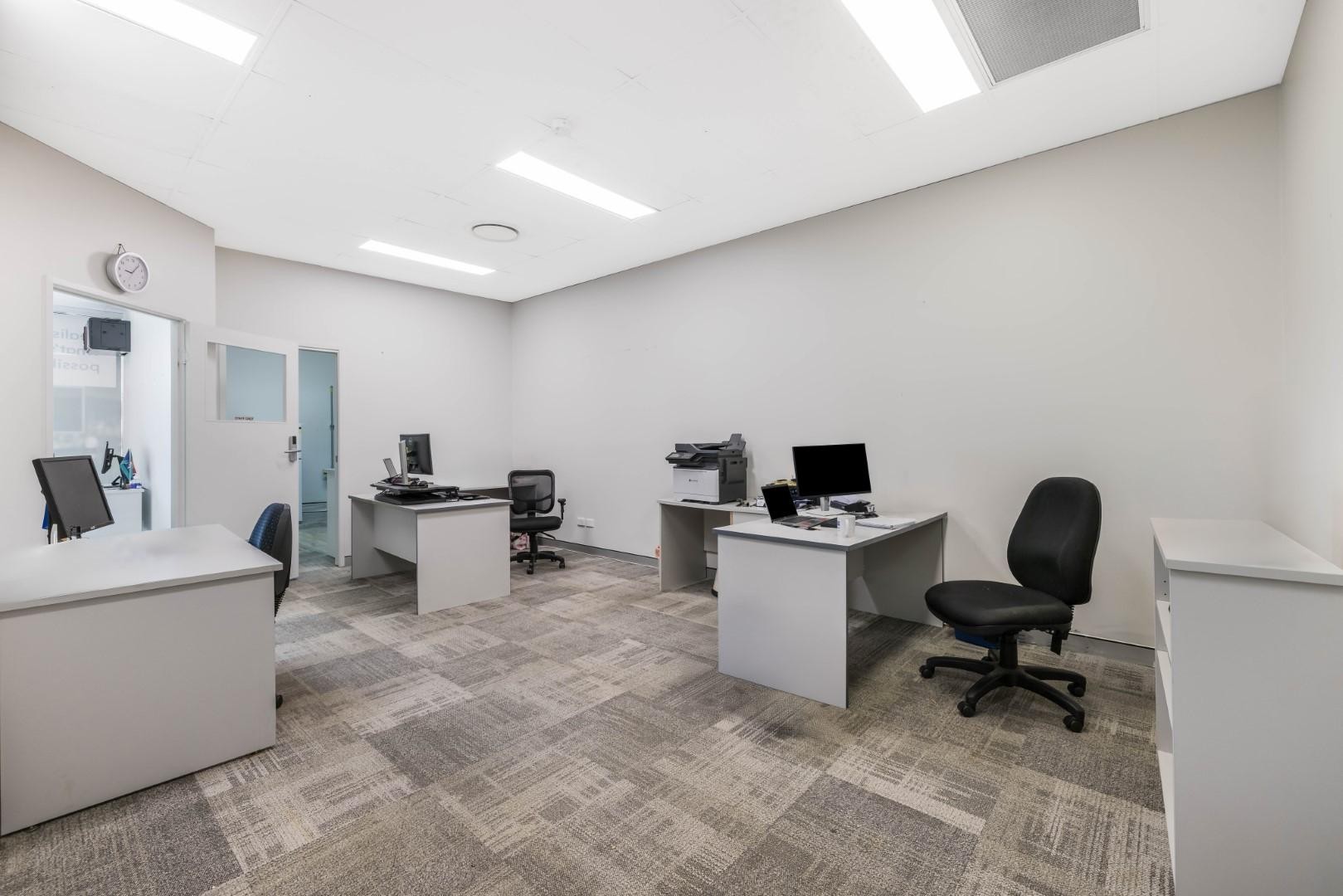~ Save on setup costs with an existing fit-out, good quality office layout including a reception area, two private offices/meeting rooms, and two open plan workspaces.