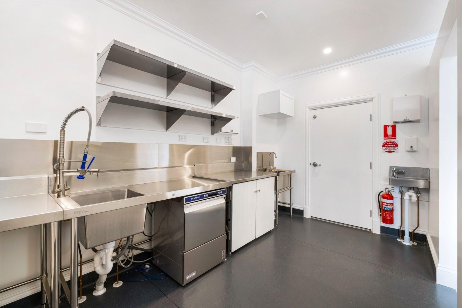 • Existing fit-out including 4 sinks, stainless steel benches and shelving