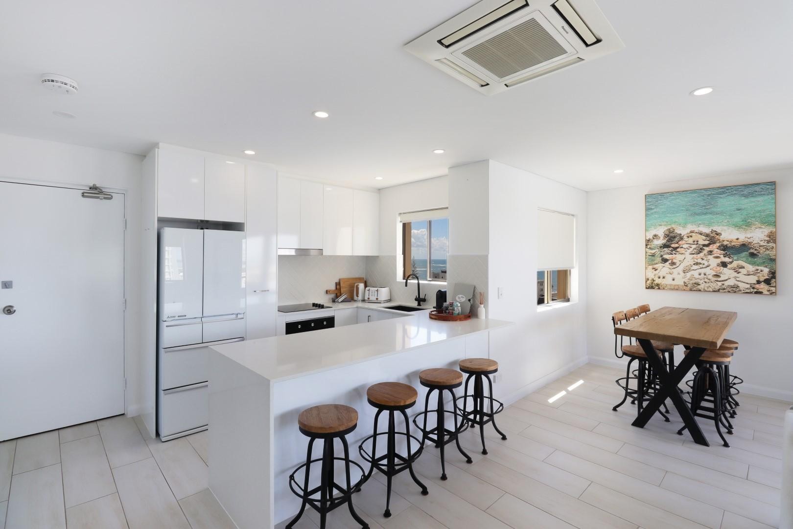 The fully furnished property features an open-plan kitchen, living, and dining area that flows seamlessly out onto the balcony - perfect for enjoying the views or entertaining.