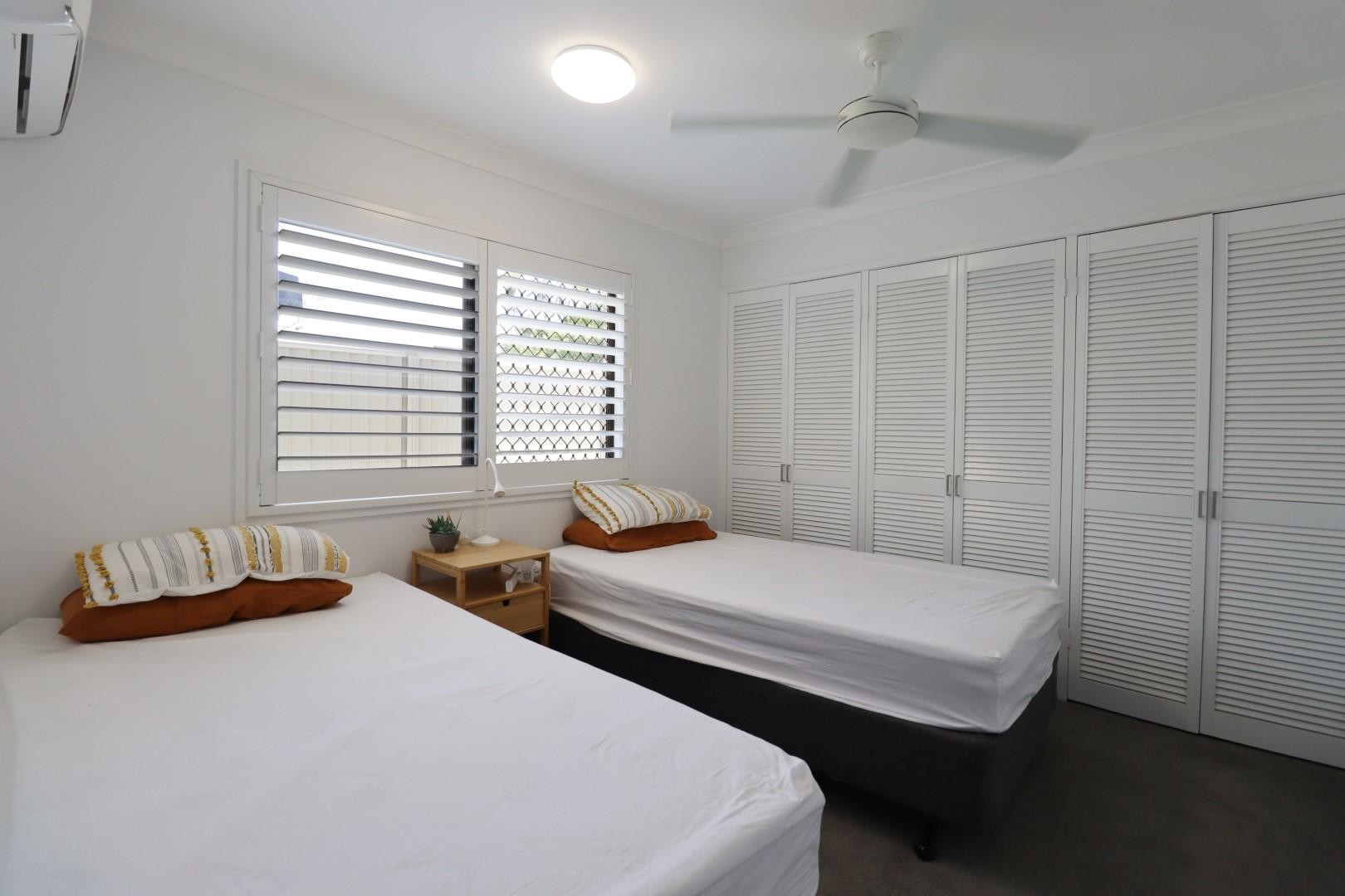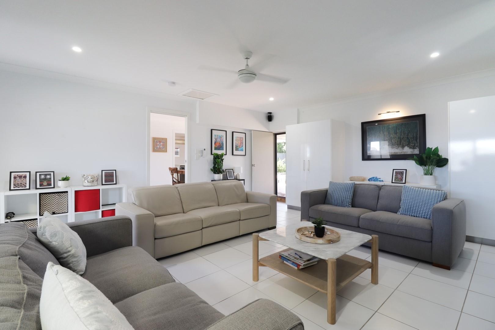 The property features three generous bedrooms, all with air conditioning, built-in robes and ceiling fans, with the main bedroom offering a private ensuite. There is also a study nook and computer station.