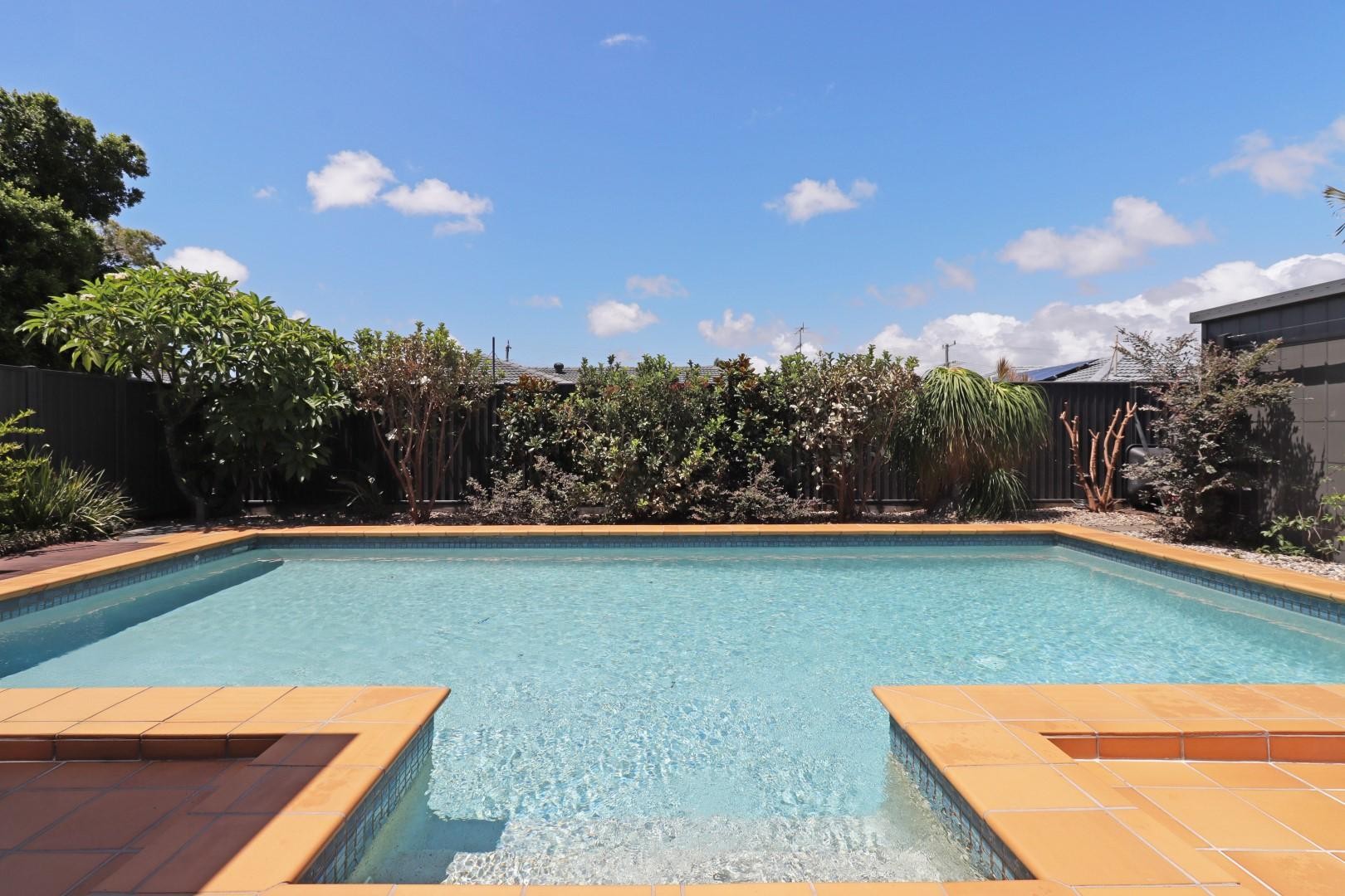 Outside, the north-facing aspect enhances natural light and outdoor living. The large in-ground swimming pool overlooks an undercover entertaining and BBQ area, perfect for relaxed coastal living. The yard is fully fenced with a block wall at the front, offering privacy and low-maintenance living.