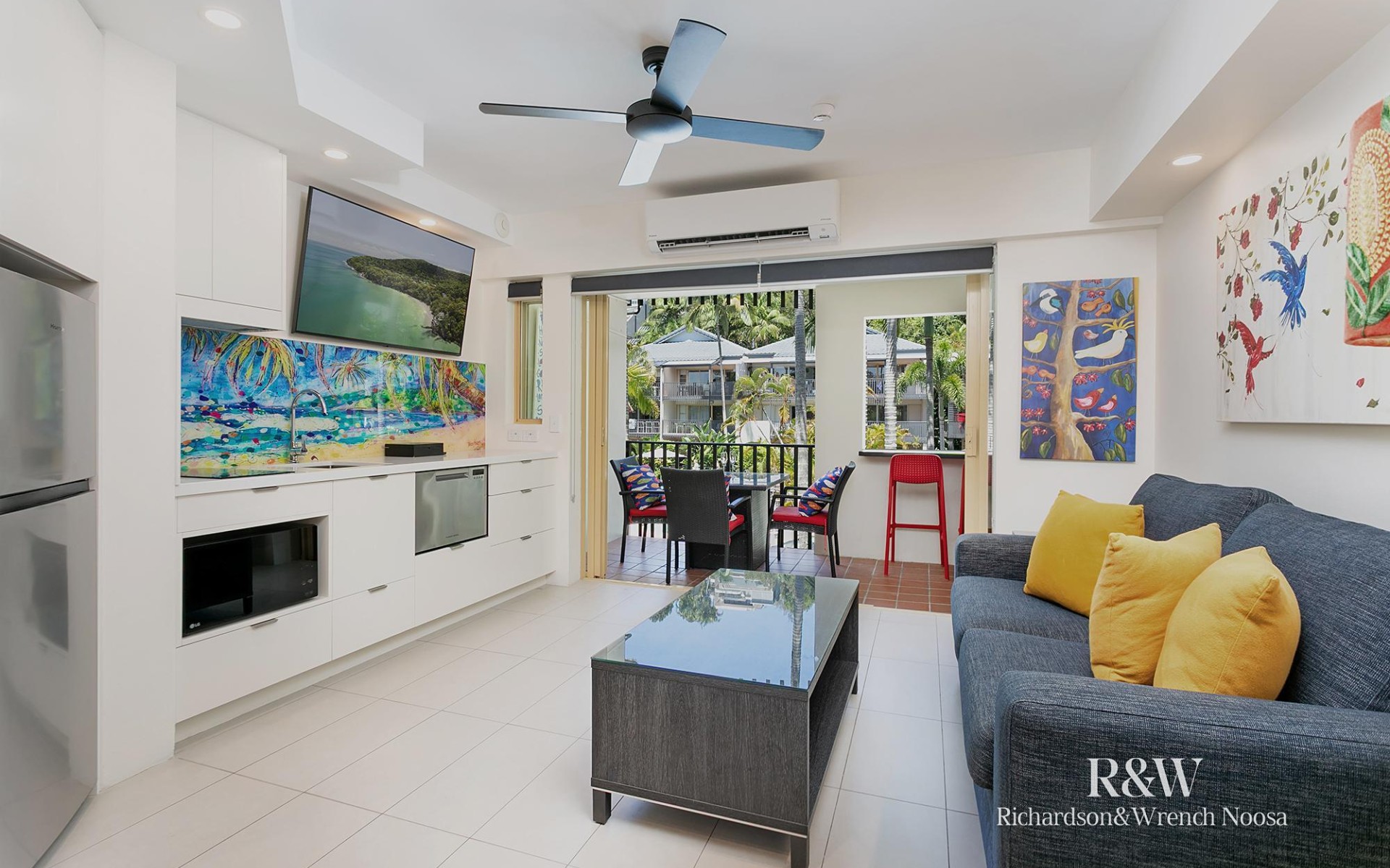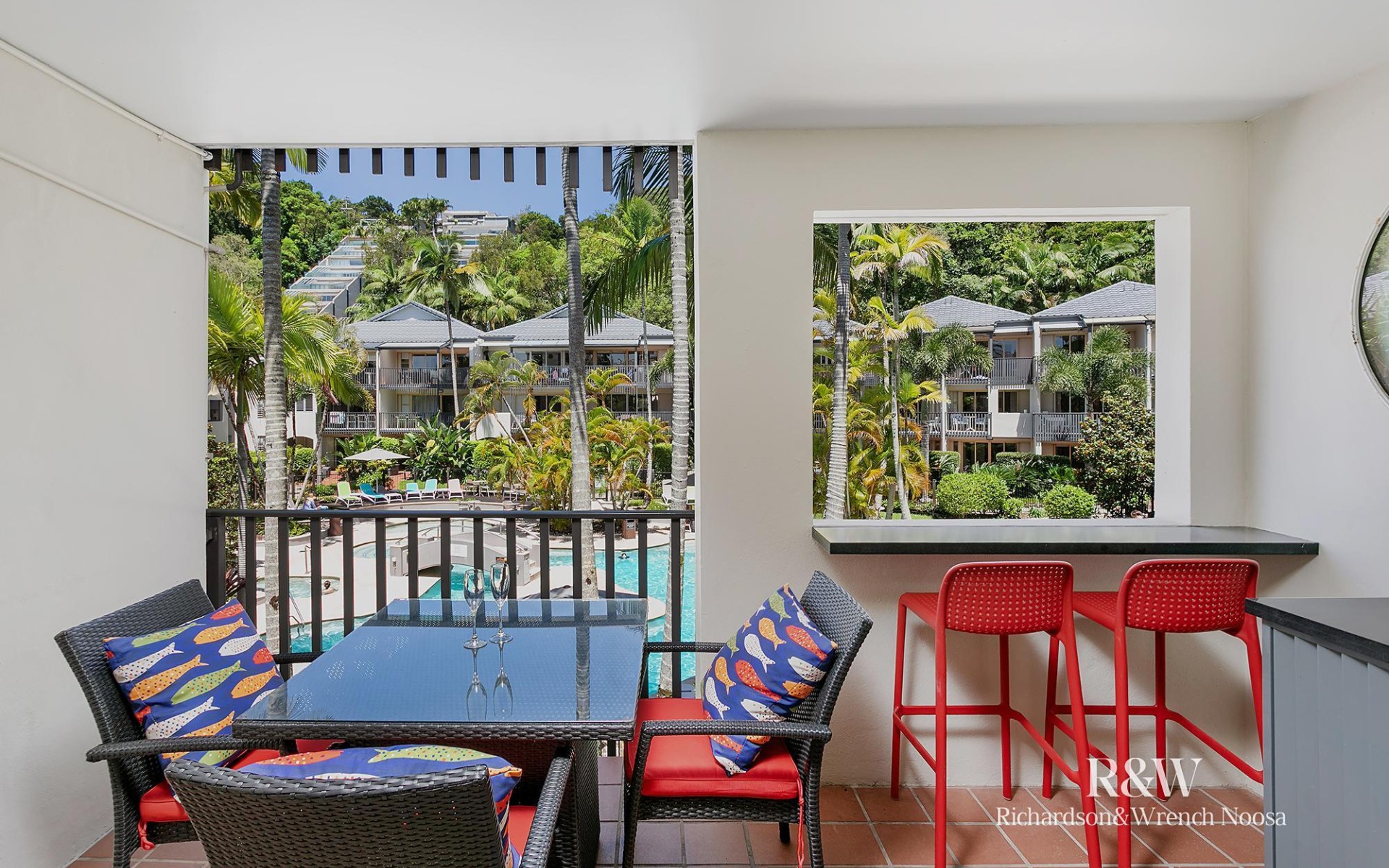 Apartment 237 has been tastefully renovated with some very special features including a stunning laser printed splash back designed by locally renowned artist Tracey Keller. It is perfectly positioned in the preferred western quarter, elevated nicely on the mid floor enjoying the Noosa winter sun. There is a well thought out breakfast bar on the balcony overlooking the famous lagoon swimming pool. The renovated bathroom includes inlaid glass tiles and a counter top basin on the vanity. The current owners completed the finish with a well designed, oversized lock up cupboard, which is ideal to store personal items at the apartment.