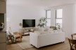 The apartment features two bedrooms and two bathrooms, with a spacious open-plan layout that seamlessly integrates living and dining areas. Large windows flood the interiors with natural light, while hybrid oak flooring and plush wool carpets create a warm yet modern feel. The designer kitchen is the true heart of the home, complete with a Caesarstone breakfast island, premium Smeg appliances, and ample storage for effortless entertaining. The master suite offers a private retreat with a double vanity ensuite, built-in mirrored robes, and bespoke cabinetry, while the second bedroom also enjoys mirrored built-ins and access to the stylish main bathroom.