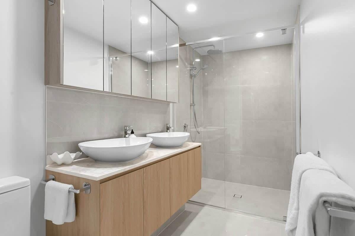 Accommodation includes well-proportioned bedrooms, with the master suite featuring a walk-in robe and well-appointed ensuite. A dedicated study nook and copious storage throughout the apartment add to its everyday practicality, while the second bedroom is serviced by a contemporary bathroom finished with quality fixtures. The penthouse-level position enhances privacy and natural light, creating a calm, airy feel throughout.