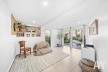 Upstairs, the light-filled open plan living, dining, and kitchen area features stunning raked ceilings and flows seamlessly onto a wide, all-weather entertaining deck with treetop views and coastal glimpses. The stylish kitchen is equipped with Caesarstone benches, stainless steel appliances, a gas cooktop, breakfast bar, an almost new electric oven, and Bosch dishwasher-perfect for effortless entertaining.
