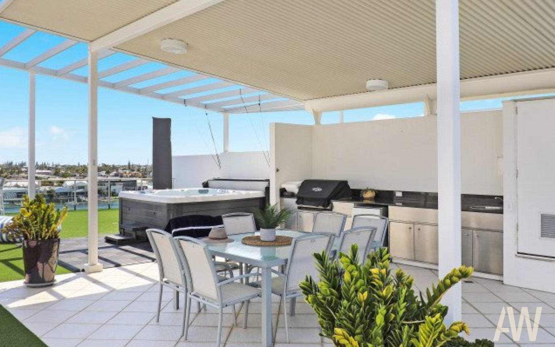 Venture upstairs to discover the real gem of this homeyour very own massive private rooftop terrace, designed for hosting unforgettable moments. This outdoor retreat features a covered entertainment area, a BBQ, sink, convenient storage, and a relaxing spa, all while offering captivating views stretching over Mooloolaba's skyline and beyond. Plus, the rooftop is DA approved for an additional 21m² build, giving you the opportunity to expand and create the perfect entertaining or living space!