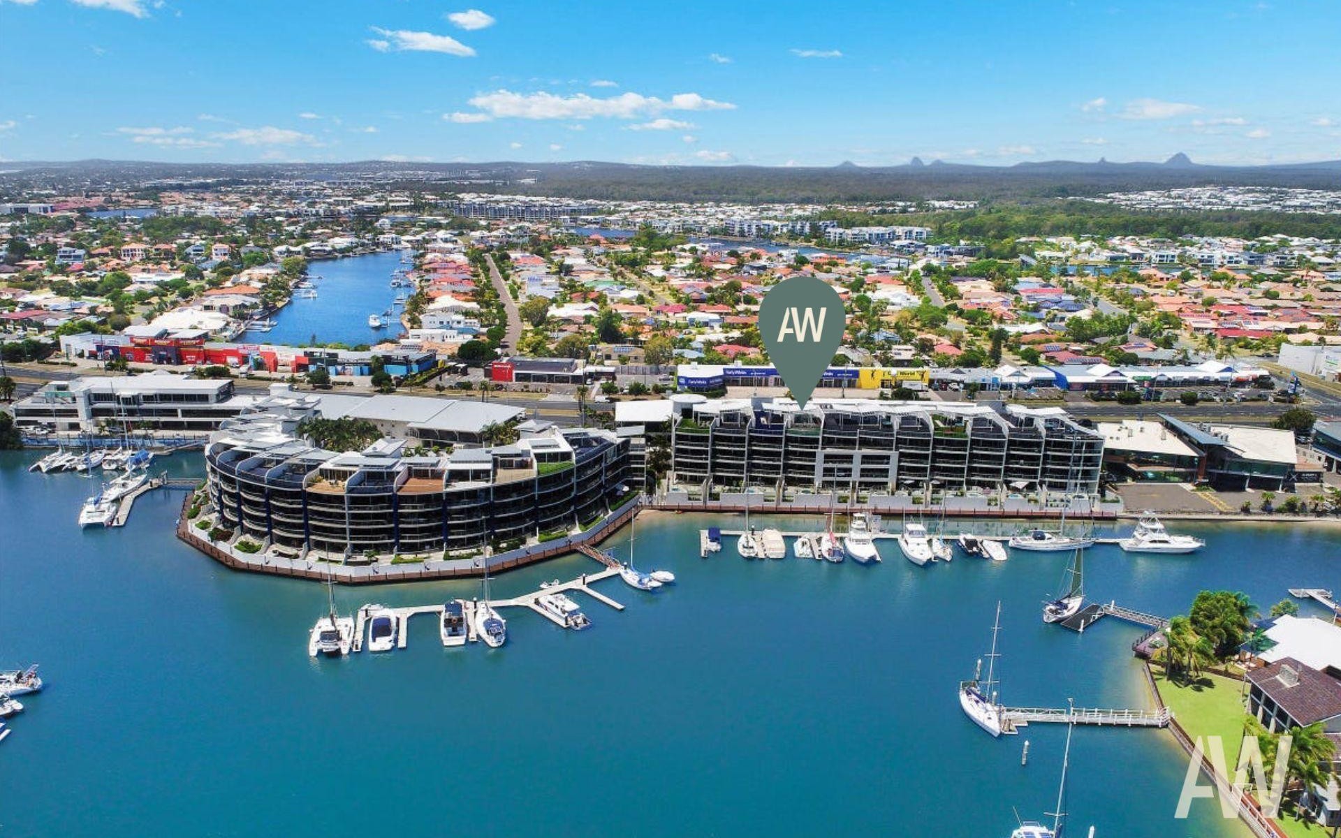 The sought-after complex features resort-style amenities, including a 25m lap pool, free-form pool, spa, sauna, BBQ area, and a waterfront boardwalk where you can enjoy fishing and water activities. For boating enthusiasts, there's even the option to lease a pontoon for your cruiser or yacht right at your doorstep.