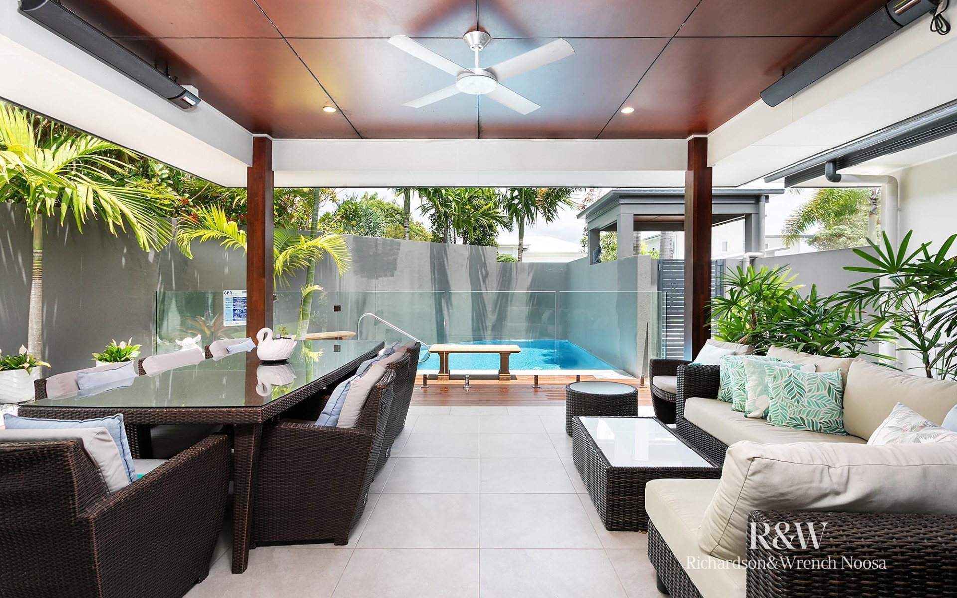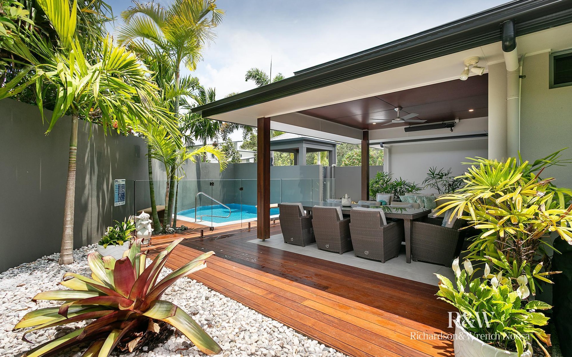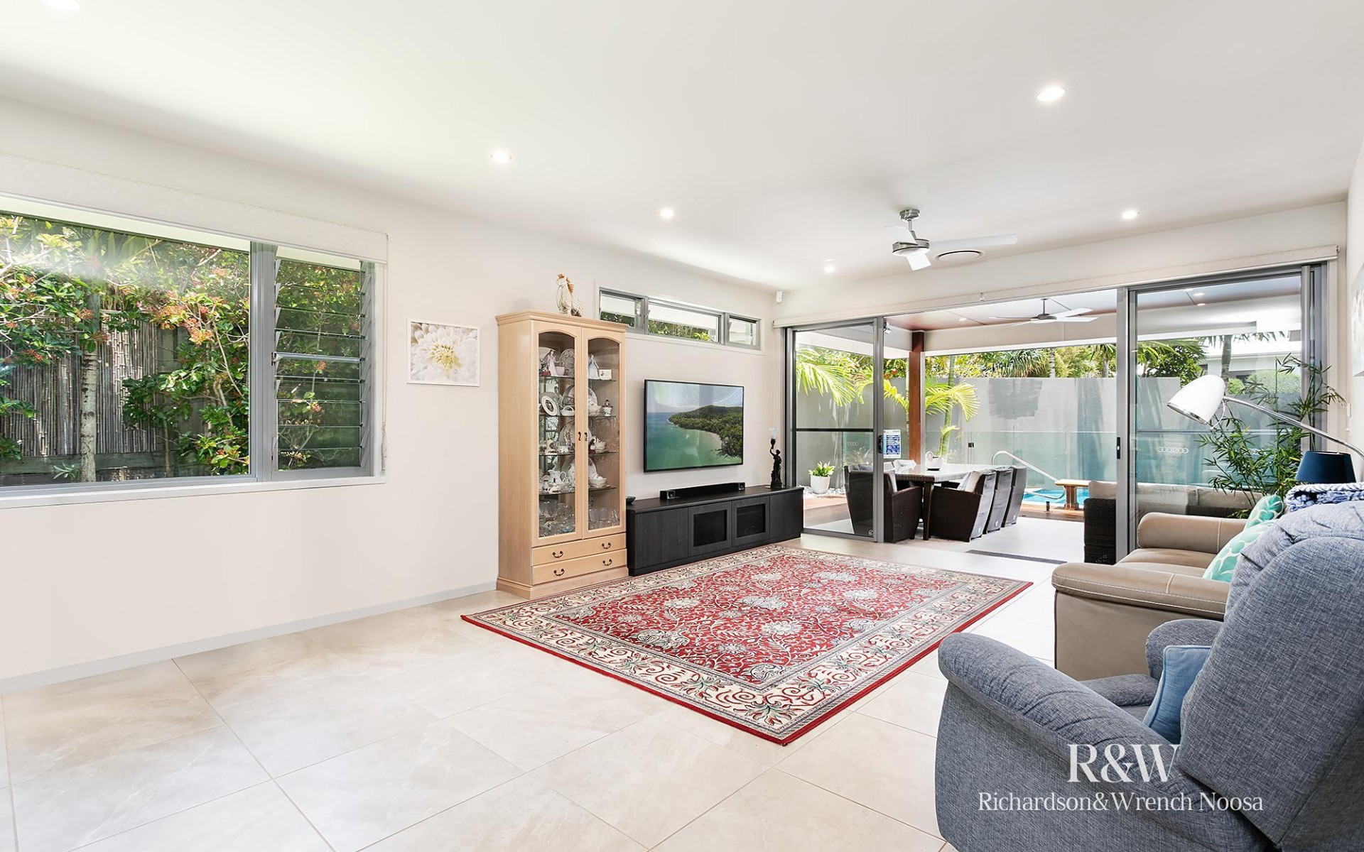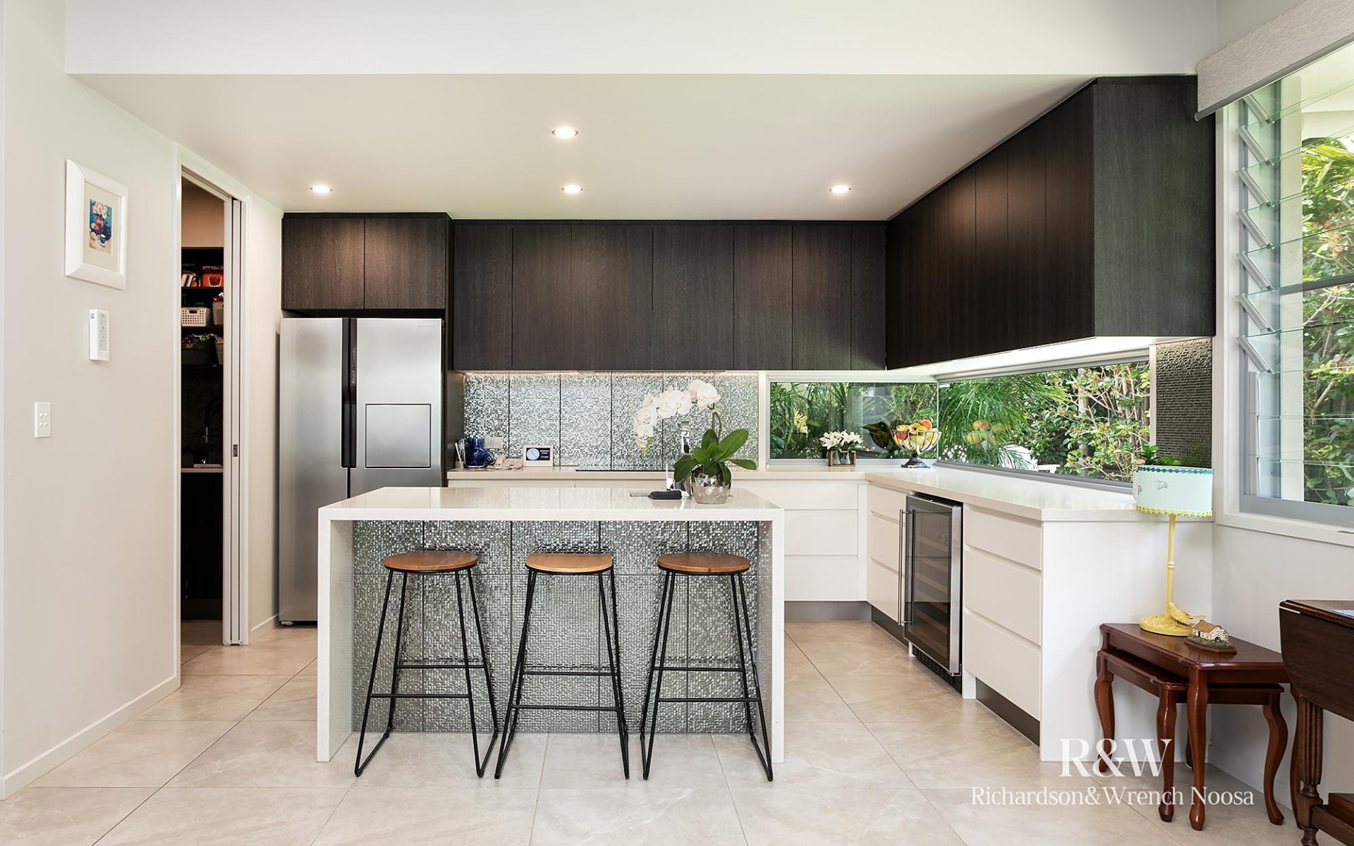 Moving inside, you will find a spacious and open-plan kitchen, dining and living zone that connects effortlessly to the alfresco. A host's dream, you can cook up a storm with a butler's pantry, an island and quality appliances while air-conditioning, ceiling fans and louvre windows promise absolute comfort, no matter the weather outside.