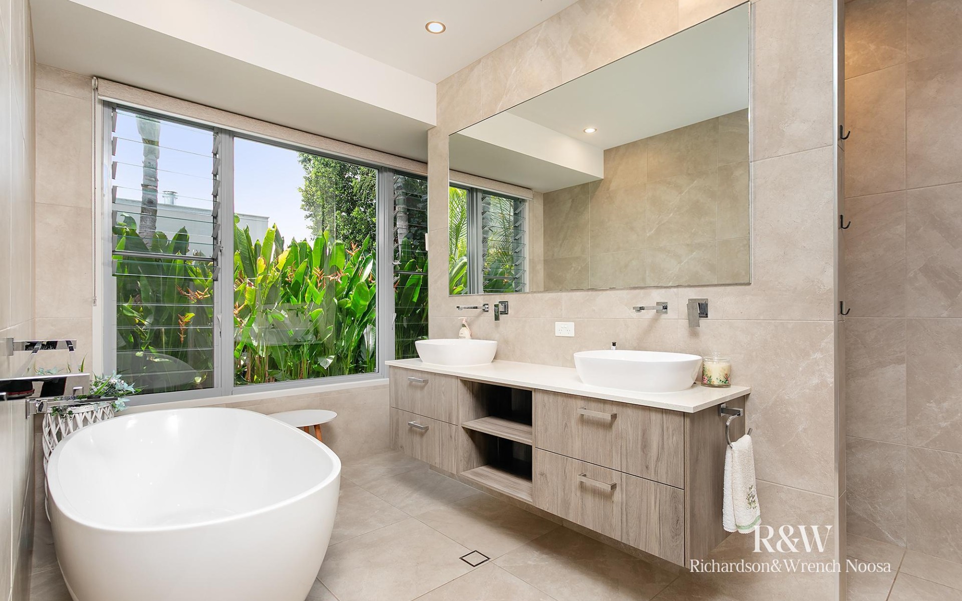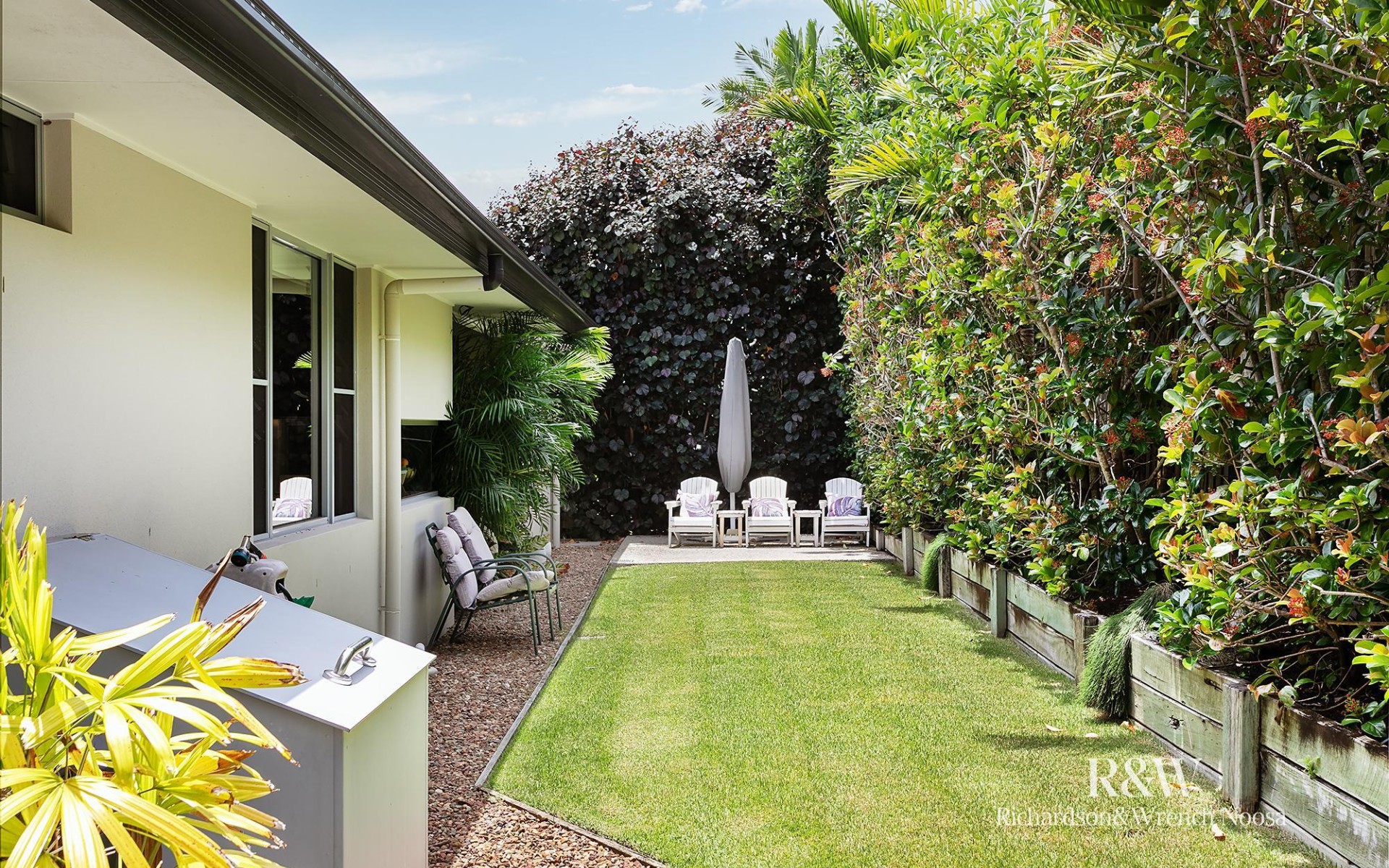All three bedrooms are a great size, including your luxe owner's suite with a walk-in robe and an opulent ensuite. With a free-standing tub, a walk-in shower, a double vanity and views over the lush gardens, this will feel more like your very own private retreat, far removed from the hustle and bustle of everyday life. Bedrooms two and three relish built-in robes and direct access to the outdoors, plus there's a well-appointed family bathroom with a separate powder room for convenience.