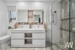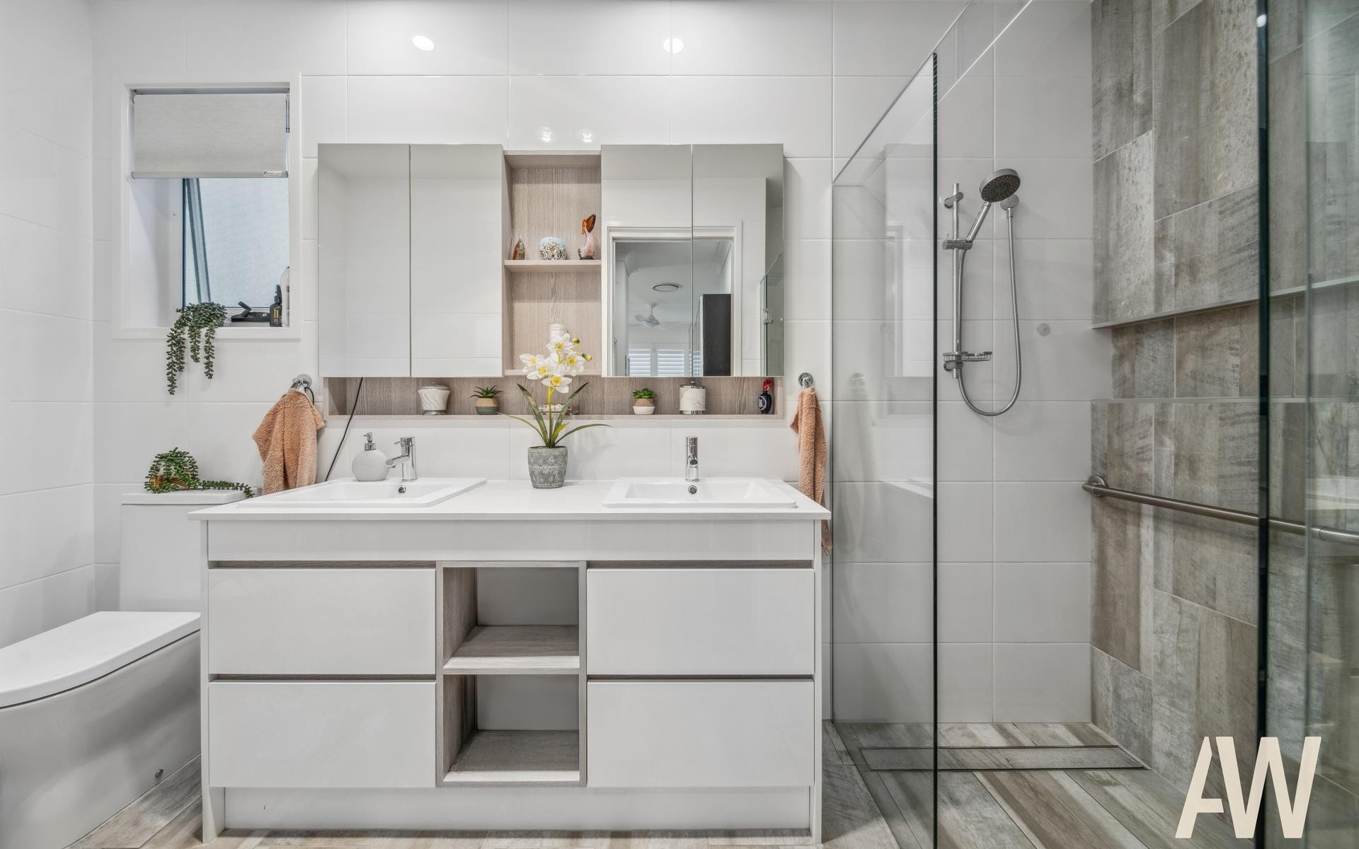 This stunning single-level villa exudes sophistication with its architecturally designed layout, boasting three well-appointed bedrooms and two sleek bathrooms. The master bedroom, complete with an opulent ensuite featuring dual vanities and sumptuous finishes, ensures a private and tranquil retreat.
