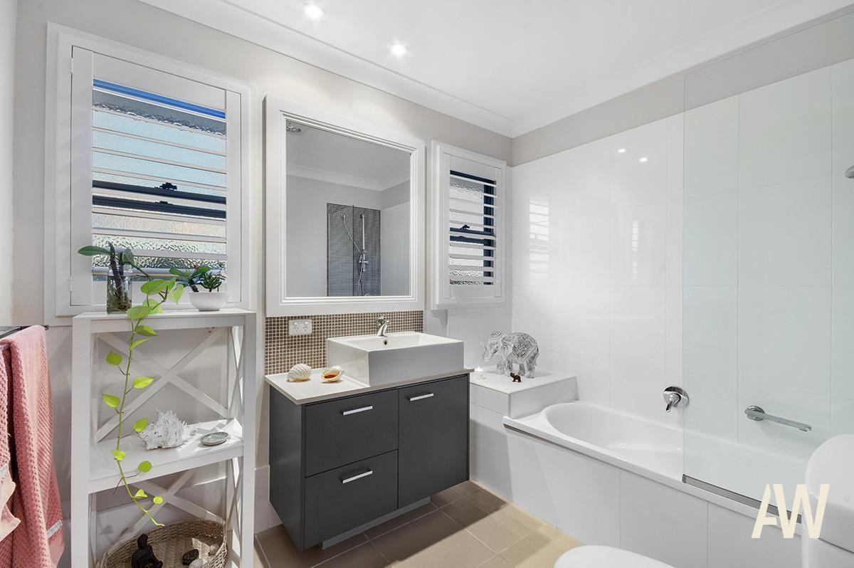 The principal bedroom and ensuite are located at the rear of the home on the ground floor and the other two bedrooms and bathroom are located at the front of the home on the upper level. There is an additional powder room on the ground floor for guests.