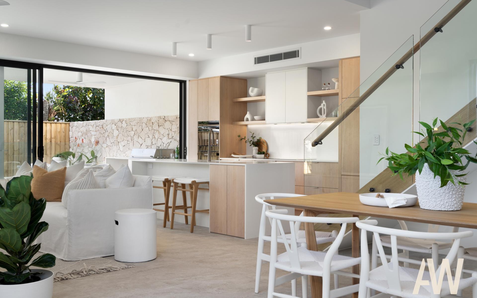 Amber Werchon Property presents to the market, 2/154 Oceanic Drive, Warana: this stunning 2025-built duplex, a high-end collaboration by Multi Award Winning Builder; Shine Builders and DCM Building Designers is located on a prime, blue-chip beachside block opposite a leafy park with direct access to the surf and sand just 180-metres away, offers elegant, easy-care living with lashings of WOW throughout.