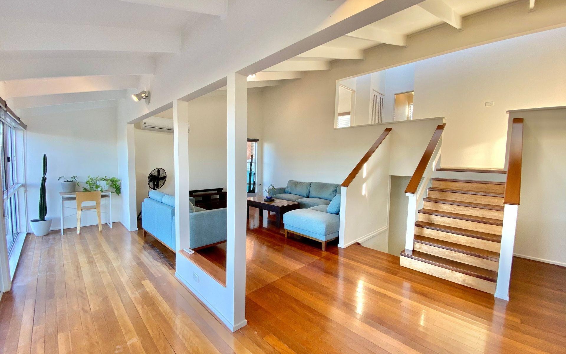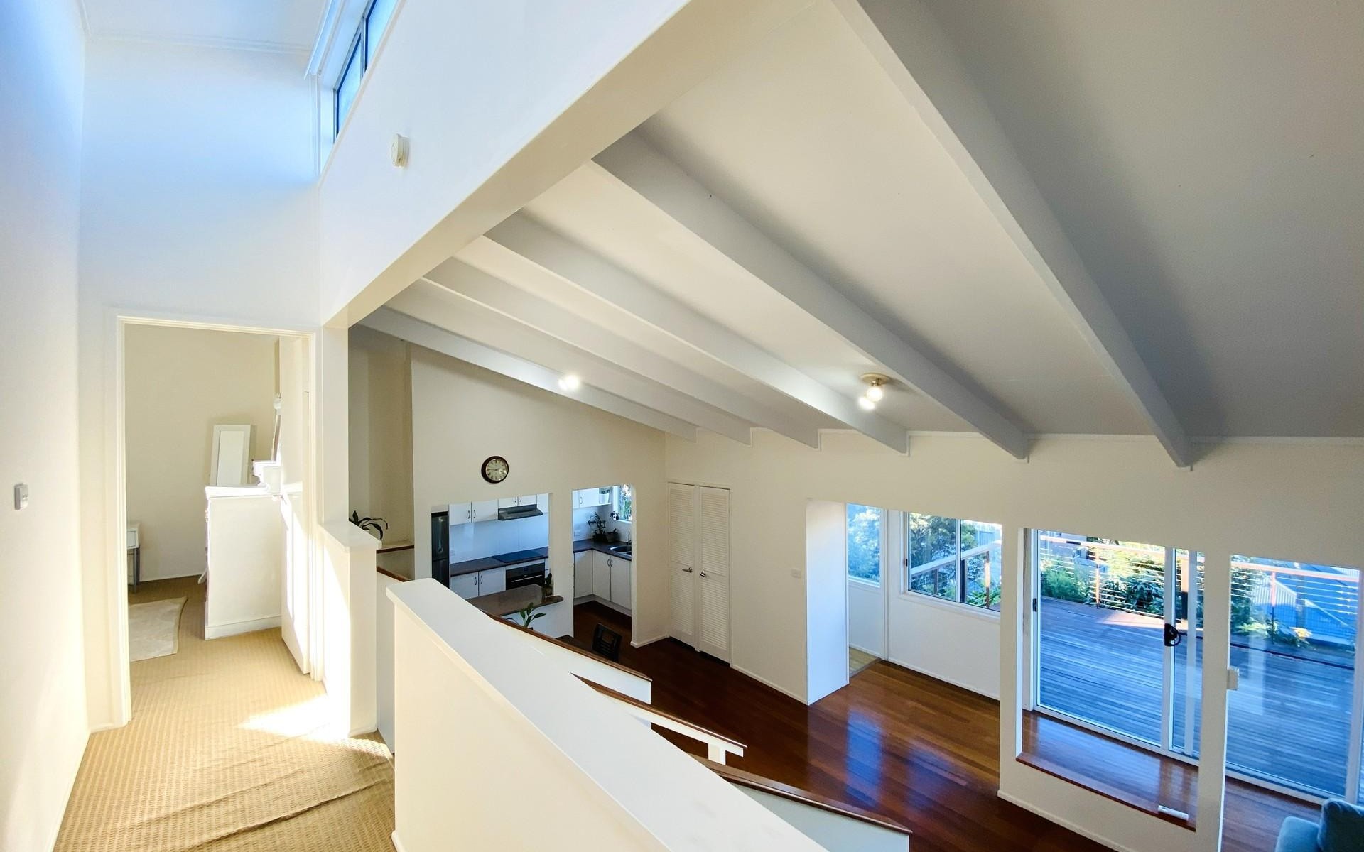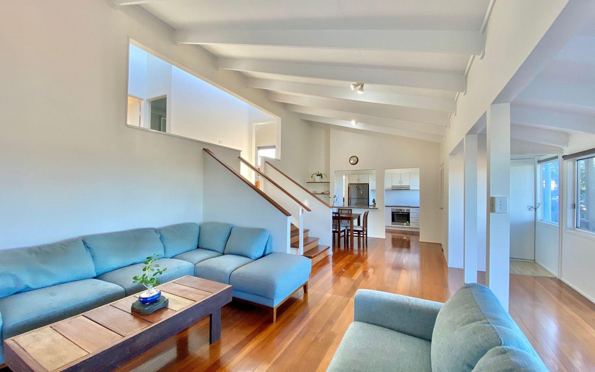 The upper level is the true lifestyle highlight, featuring two bedrooms including a spacious master suite complete with an impressive walk-in robe, alongside open-plan living and dining that flows seamlessly to a generous entertaining deck with ocean views. Here, sea breezes, leafy outlooks and coastal light combine to create an inviting space for everyday living and entertaining.