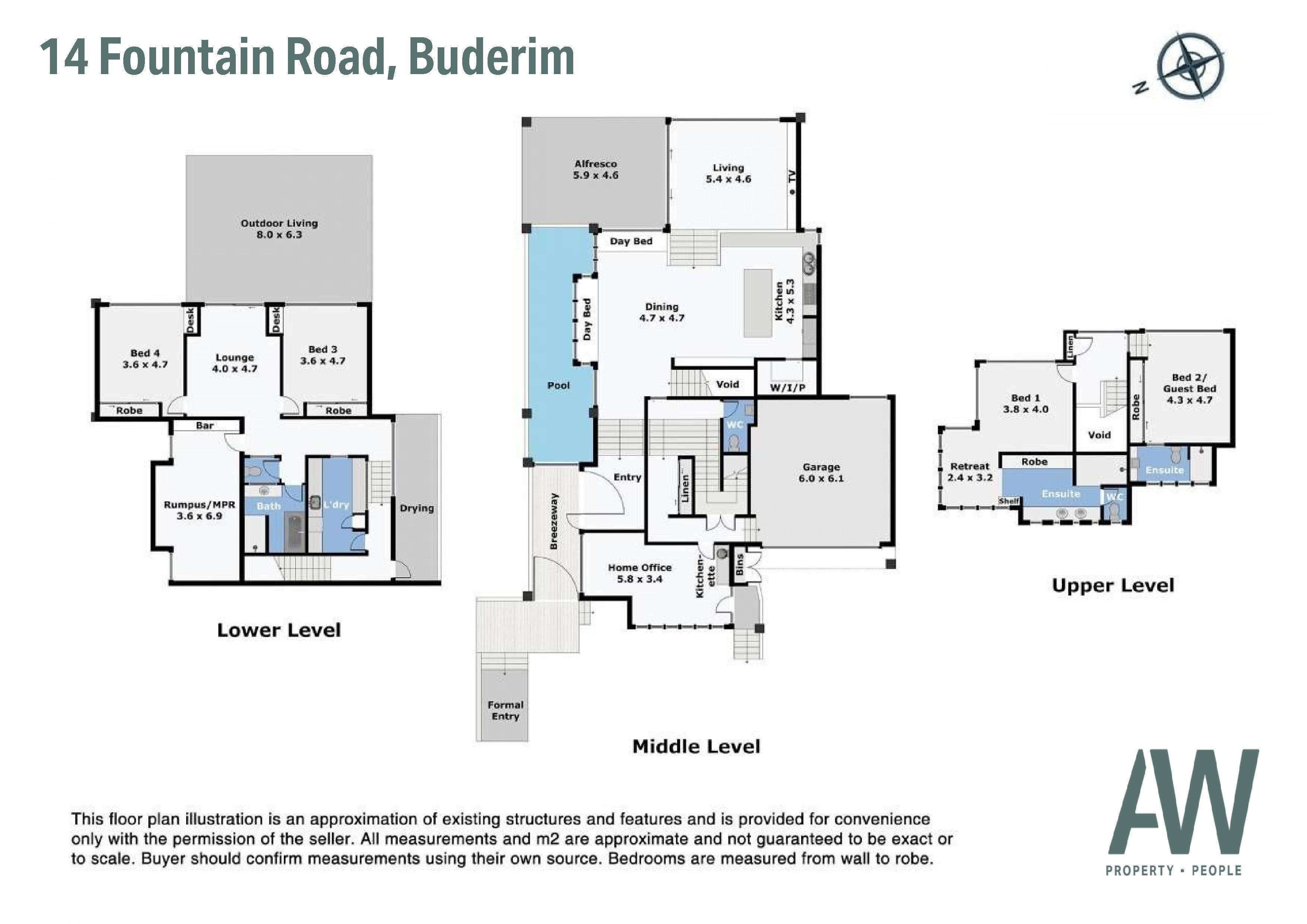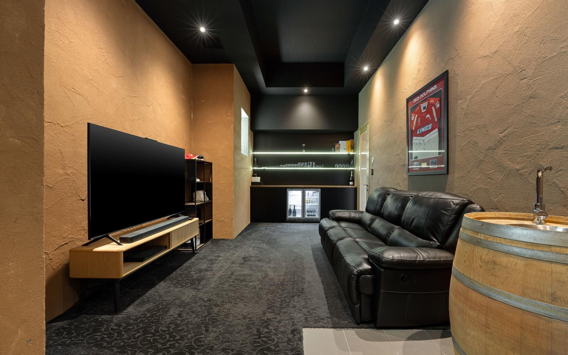 The master suite is a true retreat, complete with a private sitting area, ensuite, and walk-in robe, while a second upstairs bedroom also enjoys its own ensuite-perfect for guests. Downstairs, two oversized bedrooms, a second living area, bathroom, and a unique media/bunker room with a bar and pool views offer space and flexibility for all stages of family life.