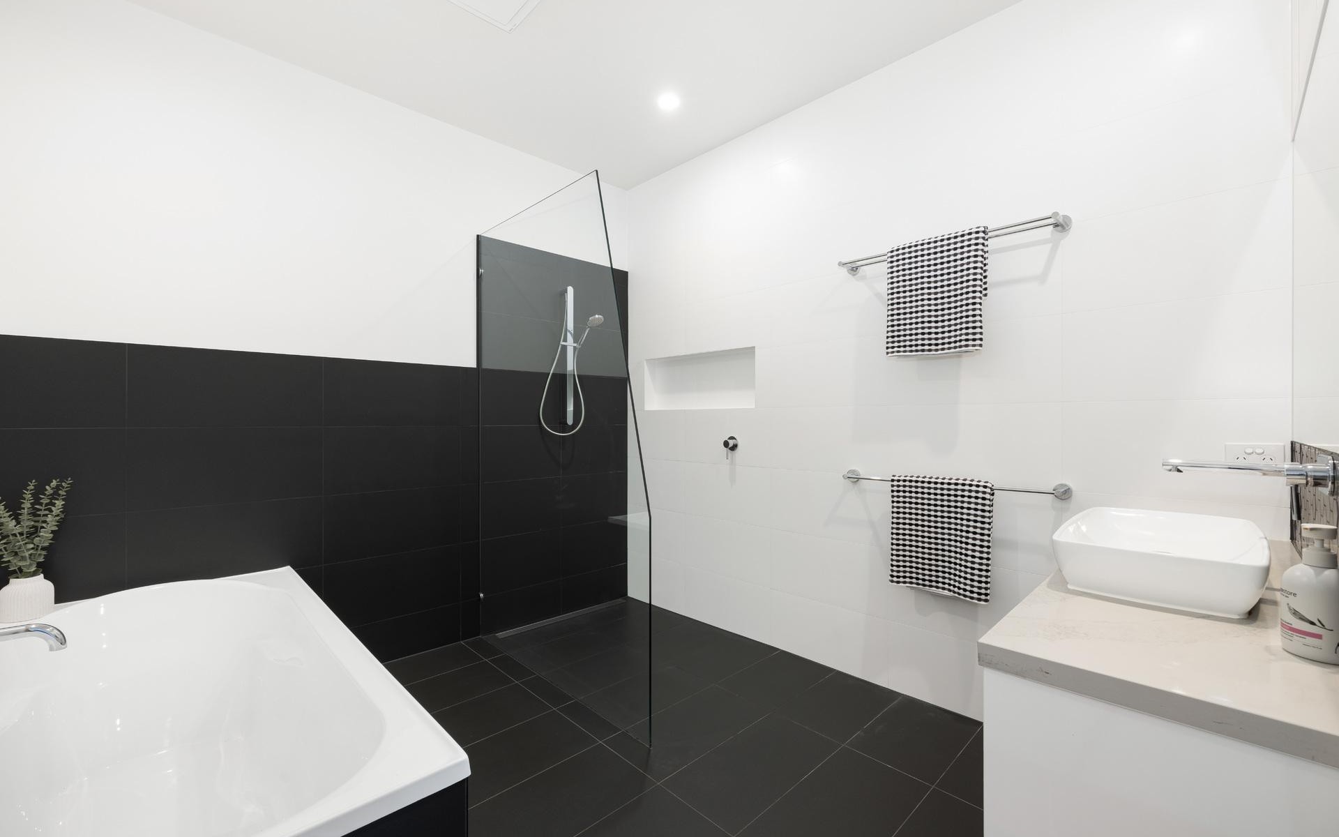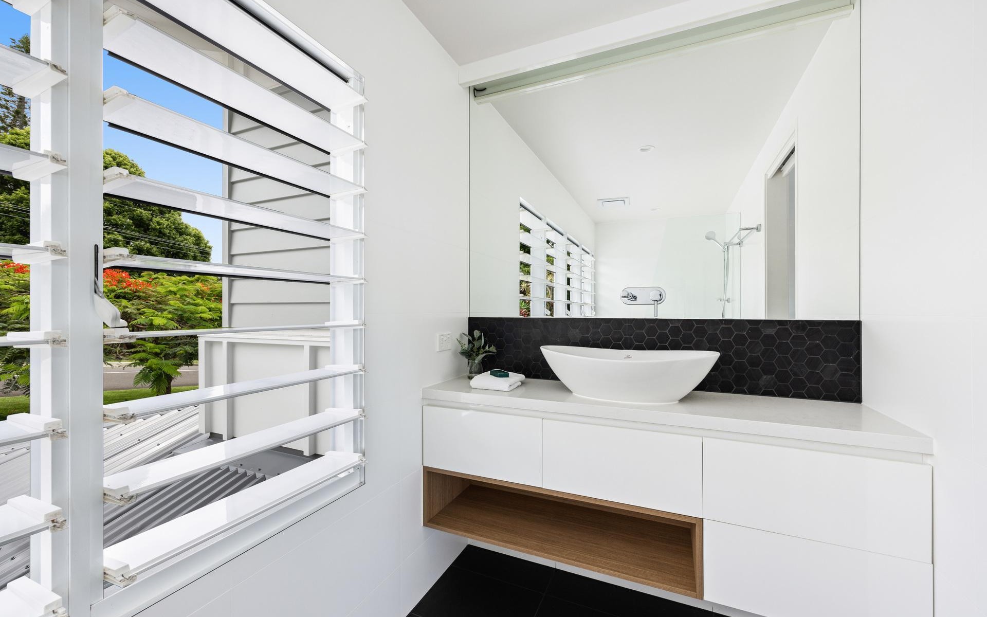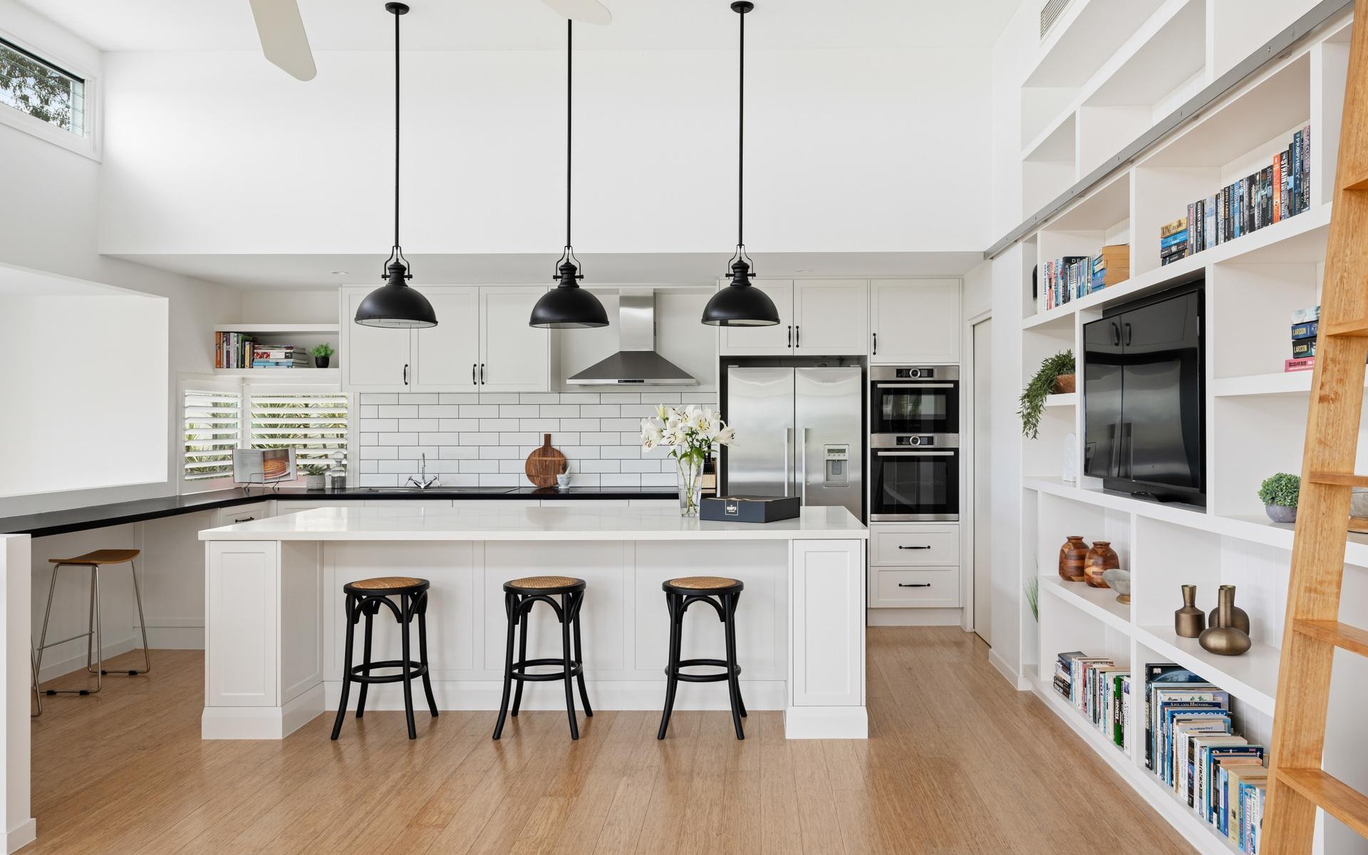 Designed across two spacious levels, the home offers versatile living zones that cater to modern family life, multigenerational living, or working from home in comfort and privacy. Crisp whites, soft greys, and natural textures blend beautifully with timber floors and Helidon sandstone to create a serene coastal aesthetic.