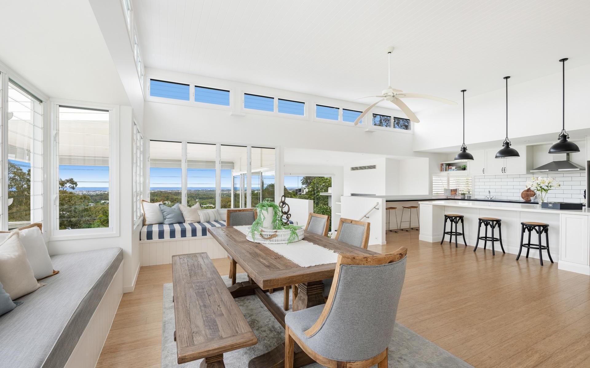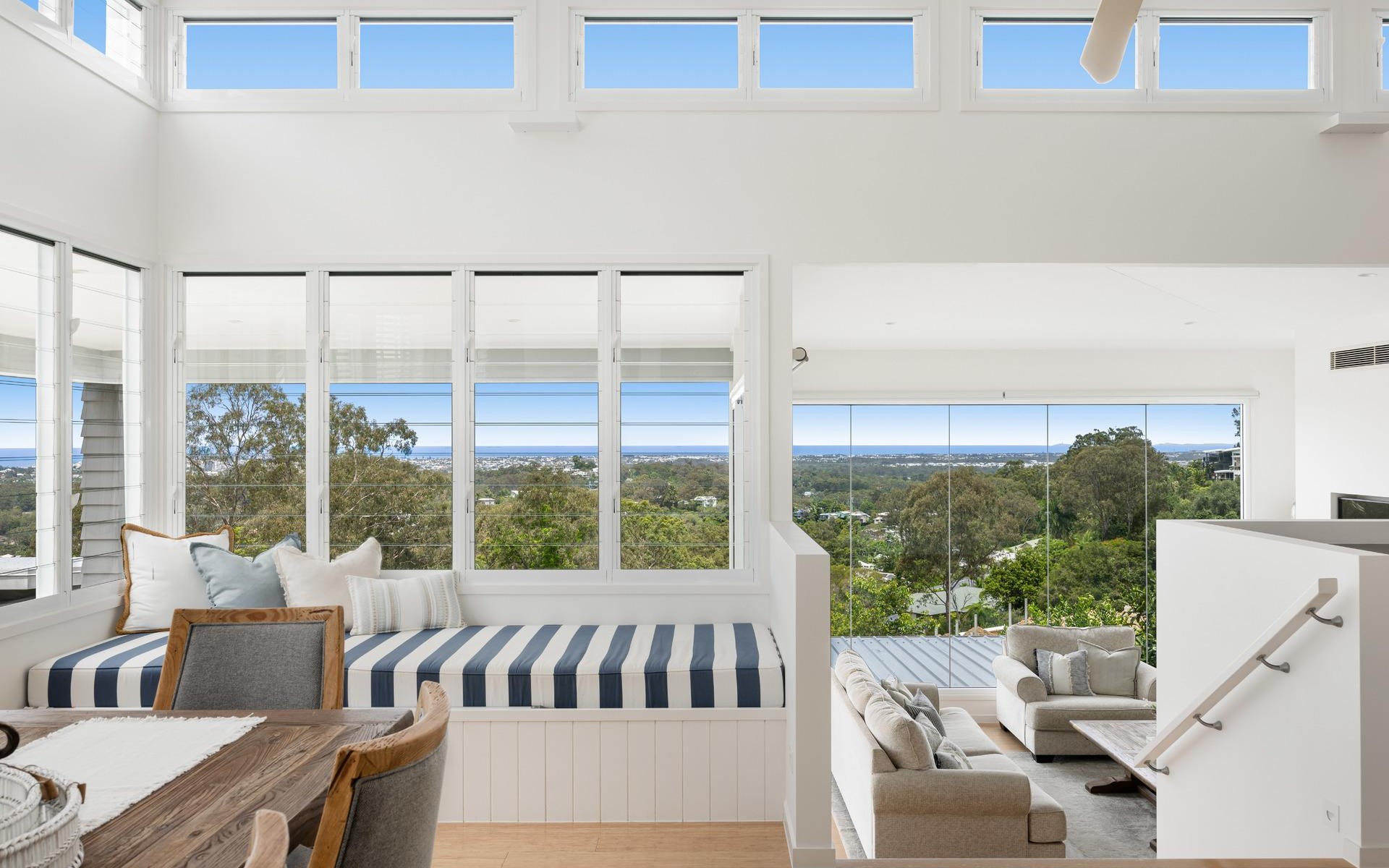 Perched high on Buderim's exclusive northern escarpment, this sophisticated Coastal Hamptons-inspired residence delivers breathtaking ocean views, impeccable design, and seamless indoor-outdoor living. Set on an 862m² parcel, every inch of this home has been thoughtfully crafted to enhance natural light, airflow, and the sweeping coastal outlook.
