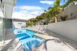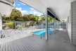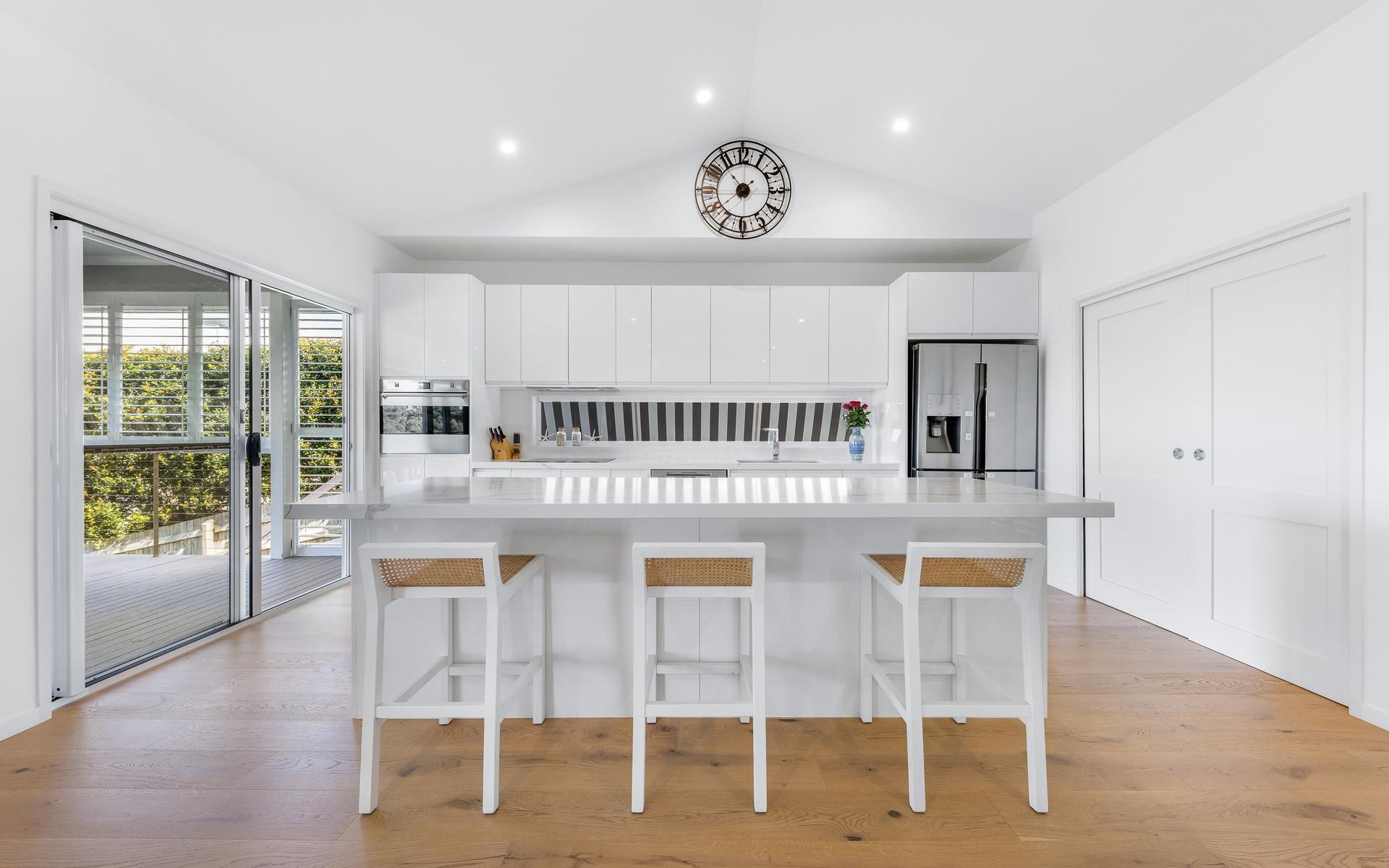 At the heart of the home is an expansive open-plan kitchen, dining, and living area, where soaring pitched ceilings enhance the sense of space and light. The chef's kitchen is a culinary dream, featuring premium Smeg appliances, including a top-of-the-line oven and induction cooktop, a Miele dishwasher, and a fully equipped butler's kitchen, perfect for entertaining or everyday living. From here, the home flows seamlessly to a large entertaining deck with a built-in BBQ, ideal for alfresco dining while overlooking the spacious backyard.