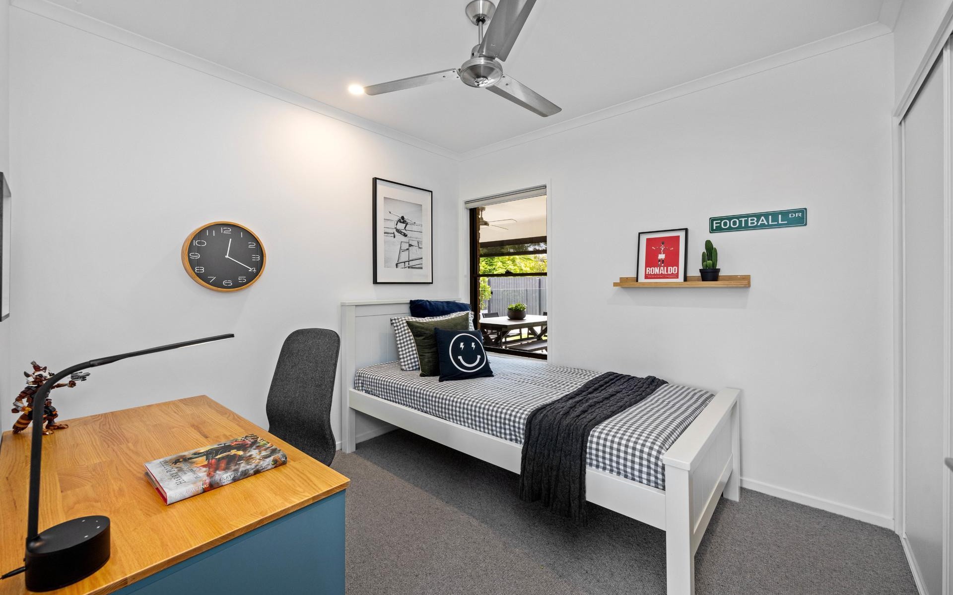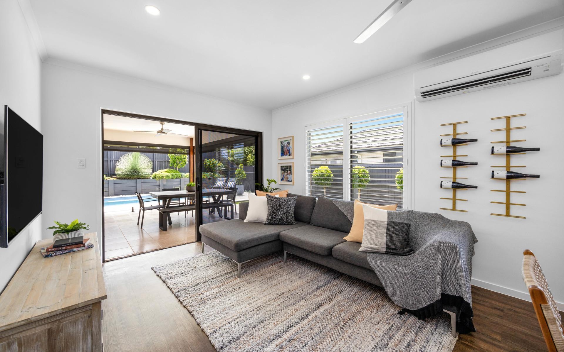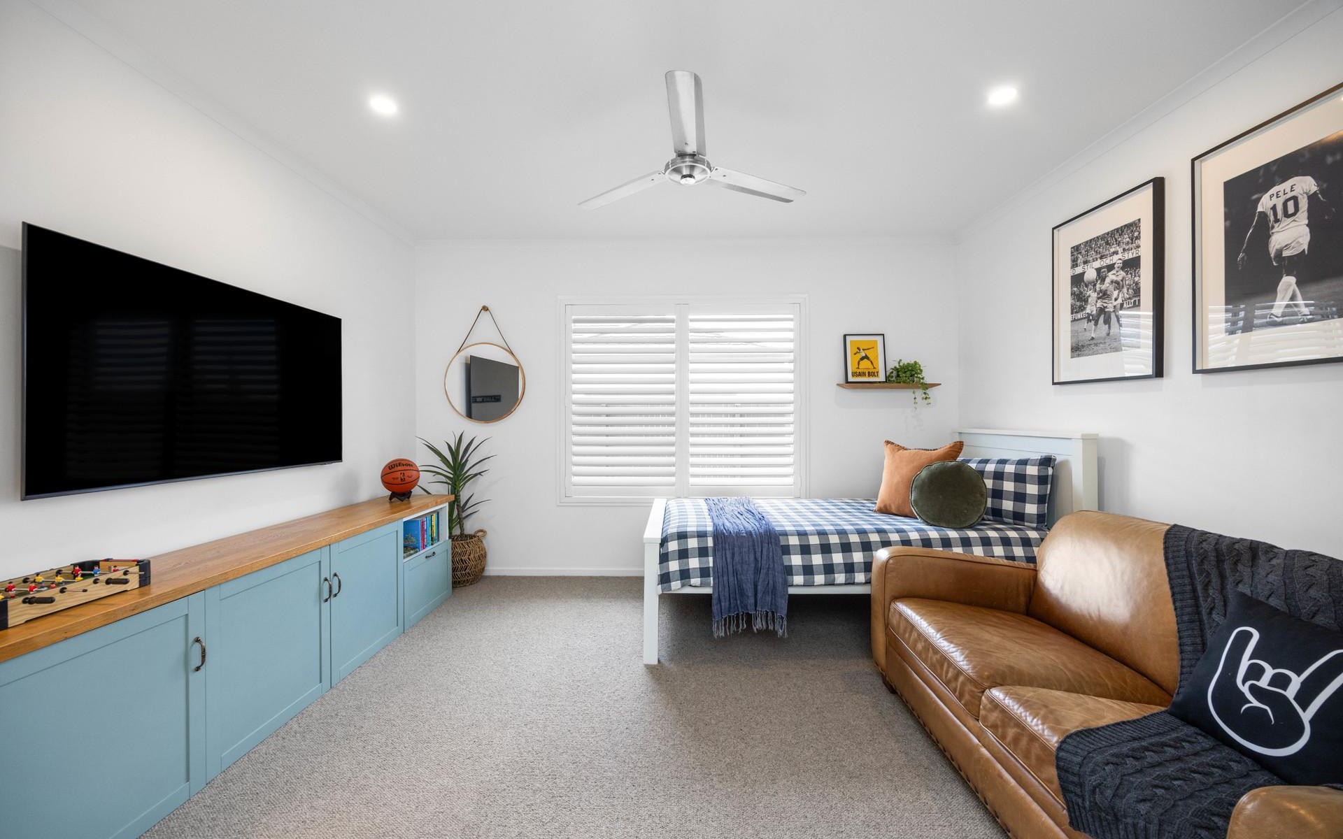 Stepping inside, the sense of space and light is immediate with quality finishes, and a refined neutral palette set the tone for modern family living. The open-plan living and dining area integrates seamlessly with the central alfresco zone, a true focal point of the home overlooking the sparkling pool. Whether entertaining friends or enjoying relaxed afternoons with family, this space is designed for year-round enjoyment. A second living area, currently used as a generous bedroom/media room, provides welcome flexibility for children's play, quiet retreat, or cinematic evenings at home.