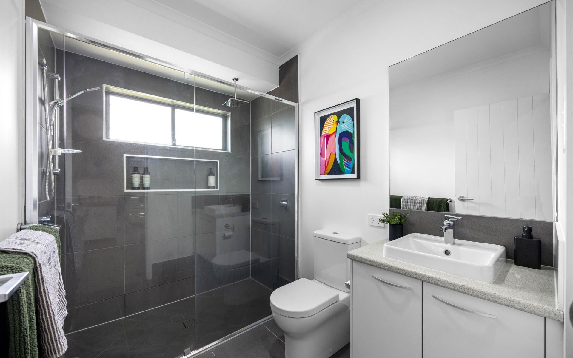 The contemporary kitchen is as functional as it is stylish, complete with stone benchtops, stainless steel appliances, and a large walk-in pantry. The master suite enjoys thoughtful separation and features a luxurious ensuite with dual shower heads, a spacious walk-in robe, and private outdoor access via screened doors. Three additional bedrooms, each fitted with built-in robes, offer comfort and privacy for family members or guests.