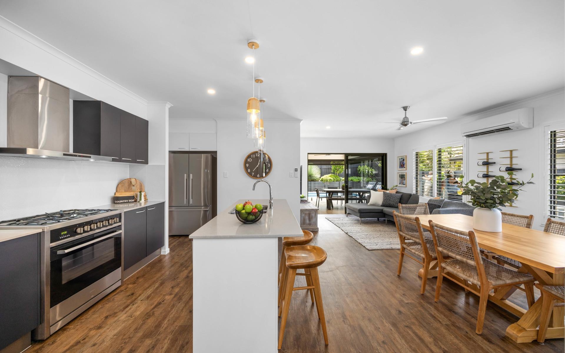 Amber Werchon Property proudly presents 18 Pinnacles Drive, Glass House Mountains; an immaculate contemporary residence positioned in one of the region's most sought-after enclaves. Commanding an elevated 650m² block in a peaceful, family-friendly street, this beautifully appointed home with its beautiful pool and sweeping mountain vistas delivers a lifestyle of tranquillity, comfort, and effortless sophistication.