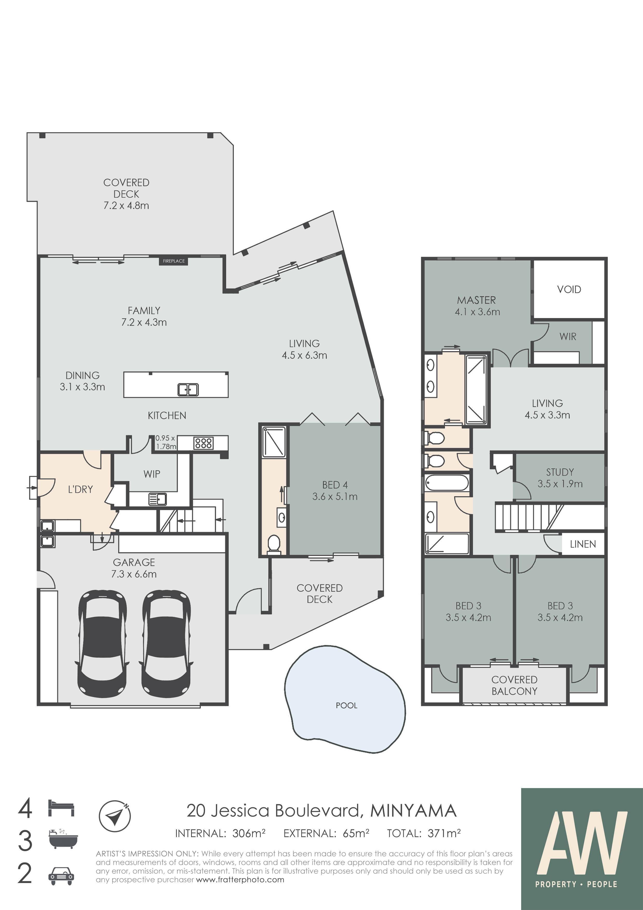 - Four bedrooms, three bathrooms including two ensuites across both levels