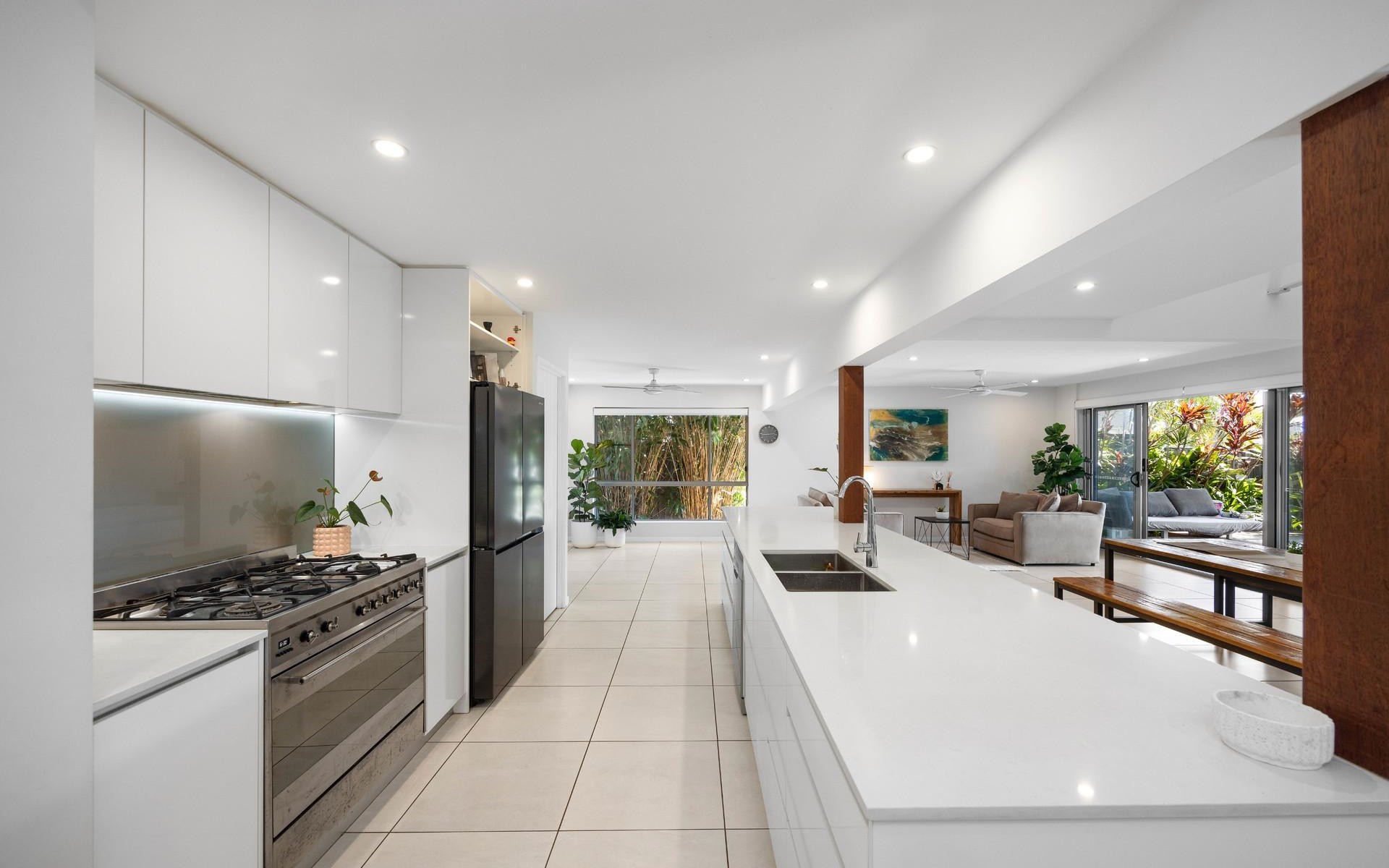The heart of the home is the gourmet kitchen with Caesarstone benches, gas cooking and a generous butler's pantry - perfectly designed for effortless entertaining. Open-plan living and dining zones flow to the expansive covered deck, grassy play areas and your very own pontoon, offering kayaking, fishing and boating with safe, direct ocean access.