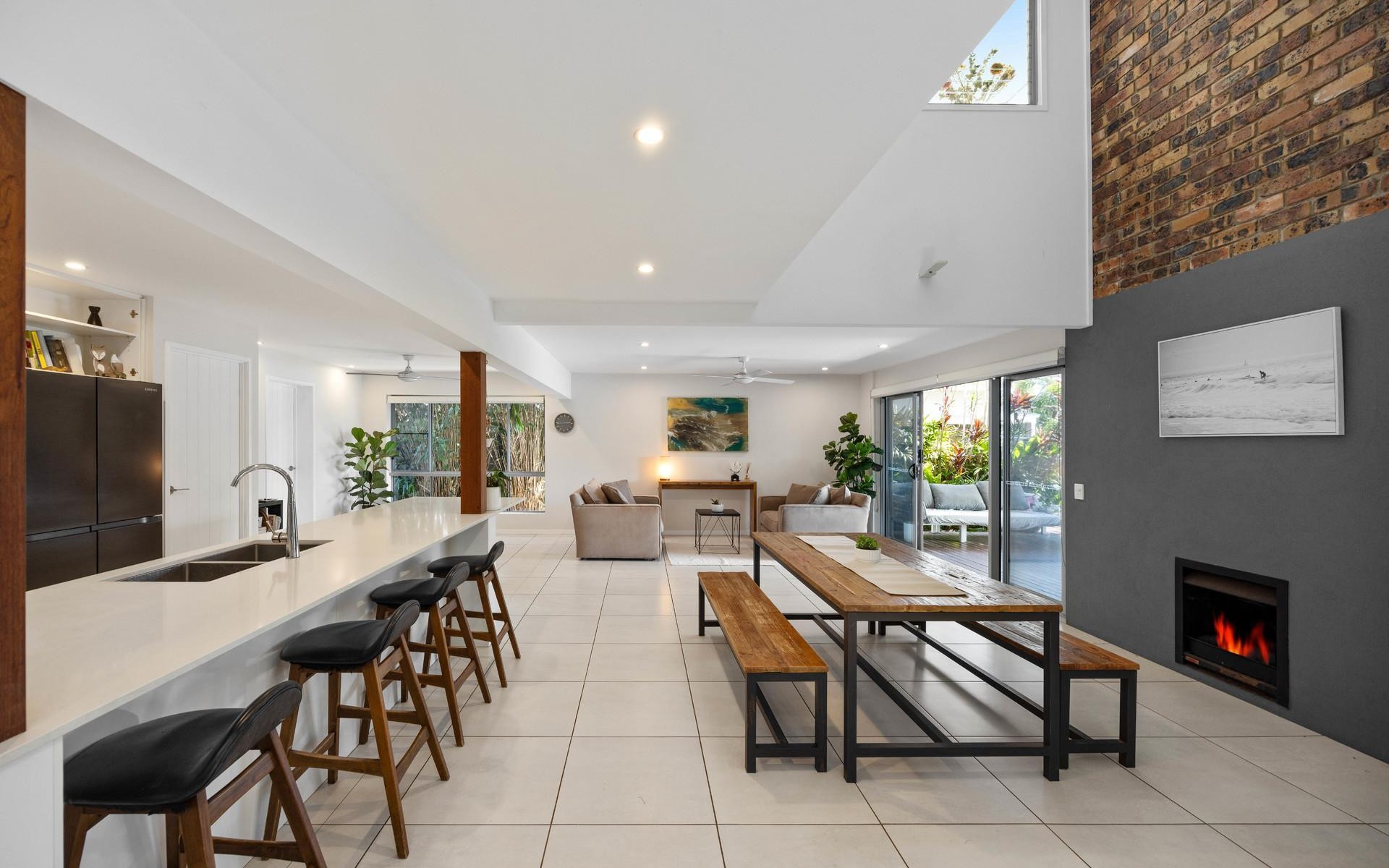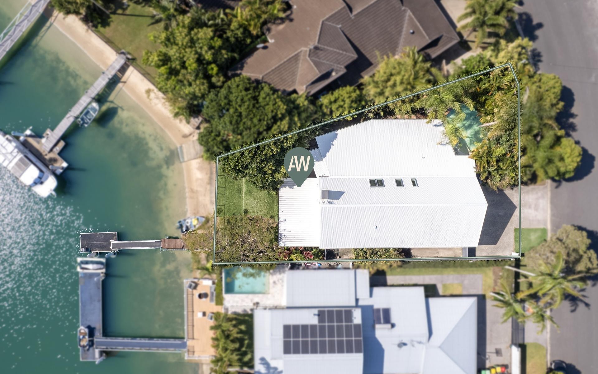 From the moment you step through the gate, a private paradise unfolds. The tropical inground pool, framed by glass fencing, sets the tone for relaxed coastal living. Indoors, soaring ceilings and light-filled interiors create a sense of space, while expansive sliding doors draw your eyes to the sparkling canal backdrop.