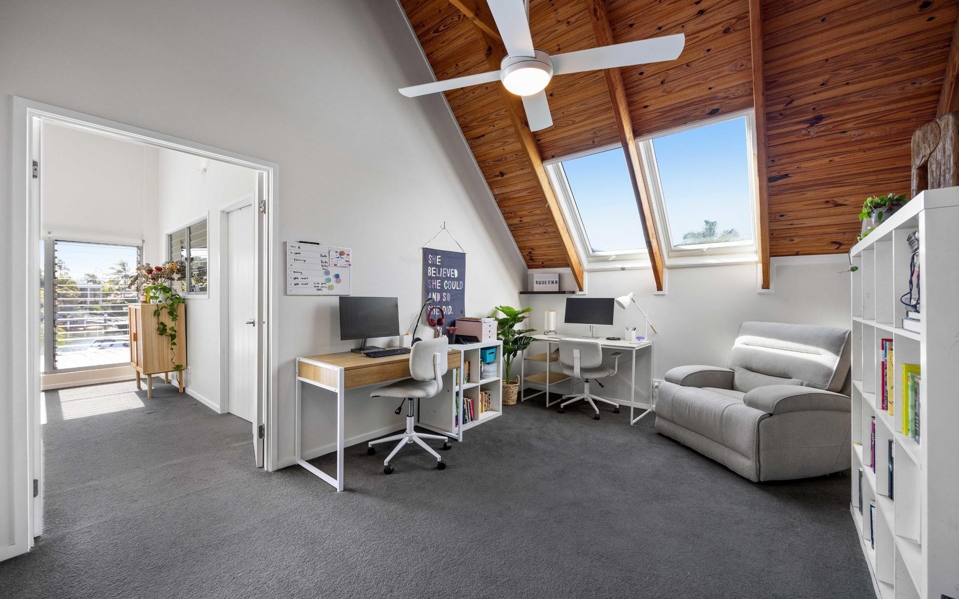 With two ensuited bedrooms (one on each level), a waterside master retreat, multiple living zones and a flexible guest/rumpus/home office, the home adapts easily to family, professional or dual-living needs.