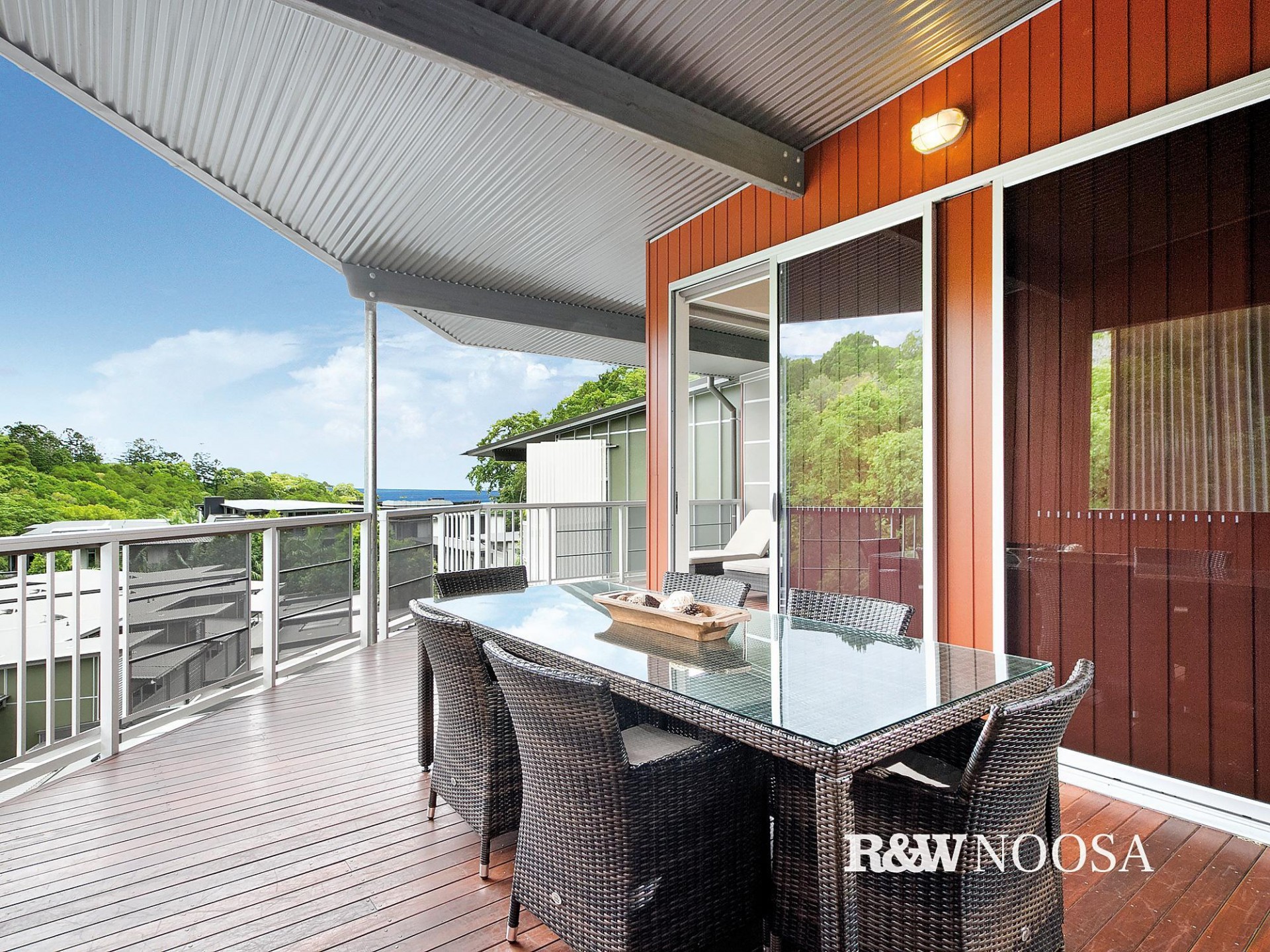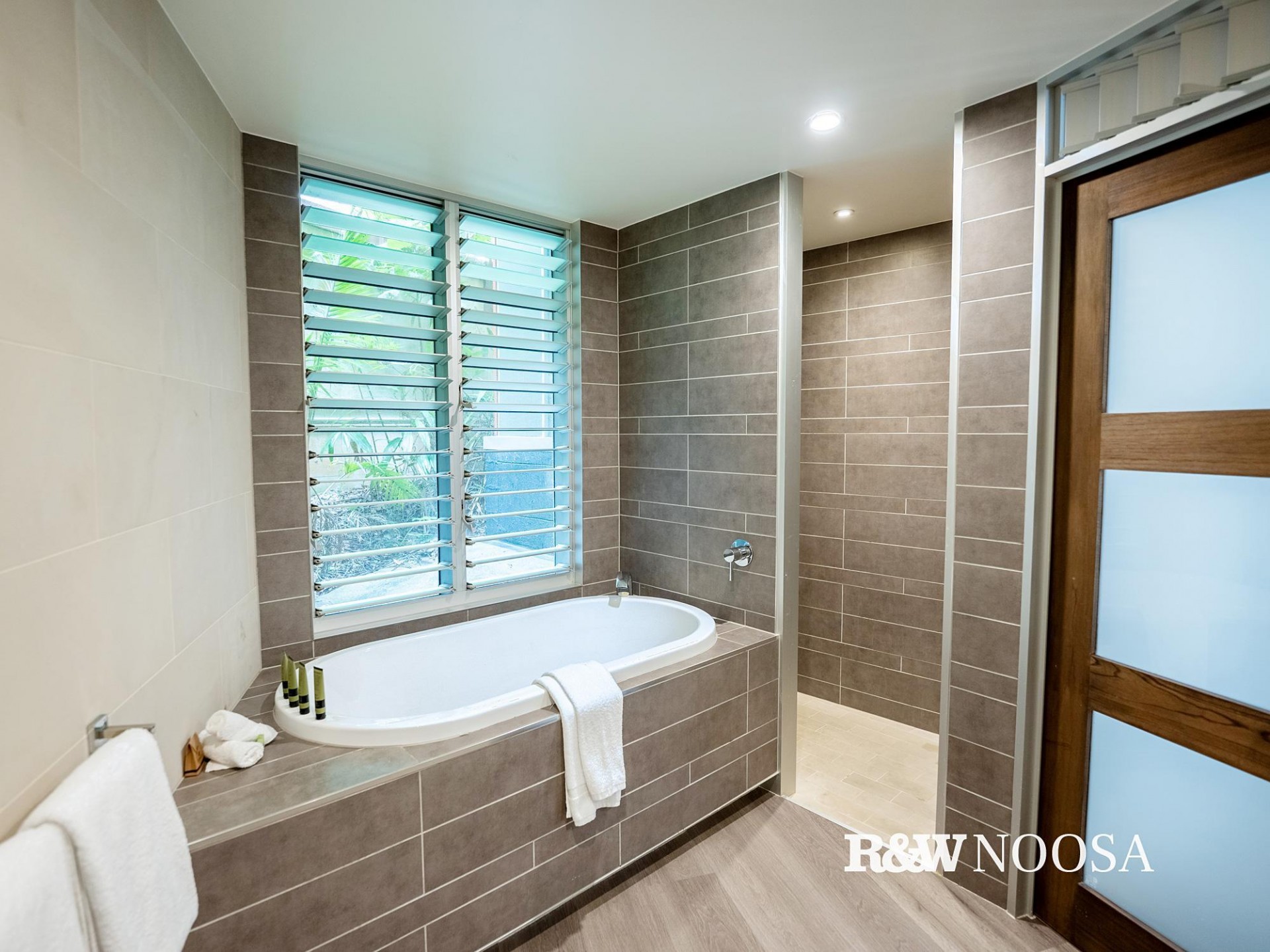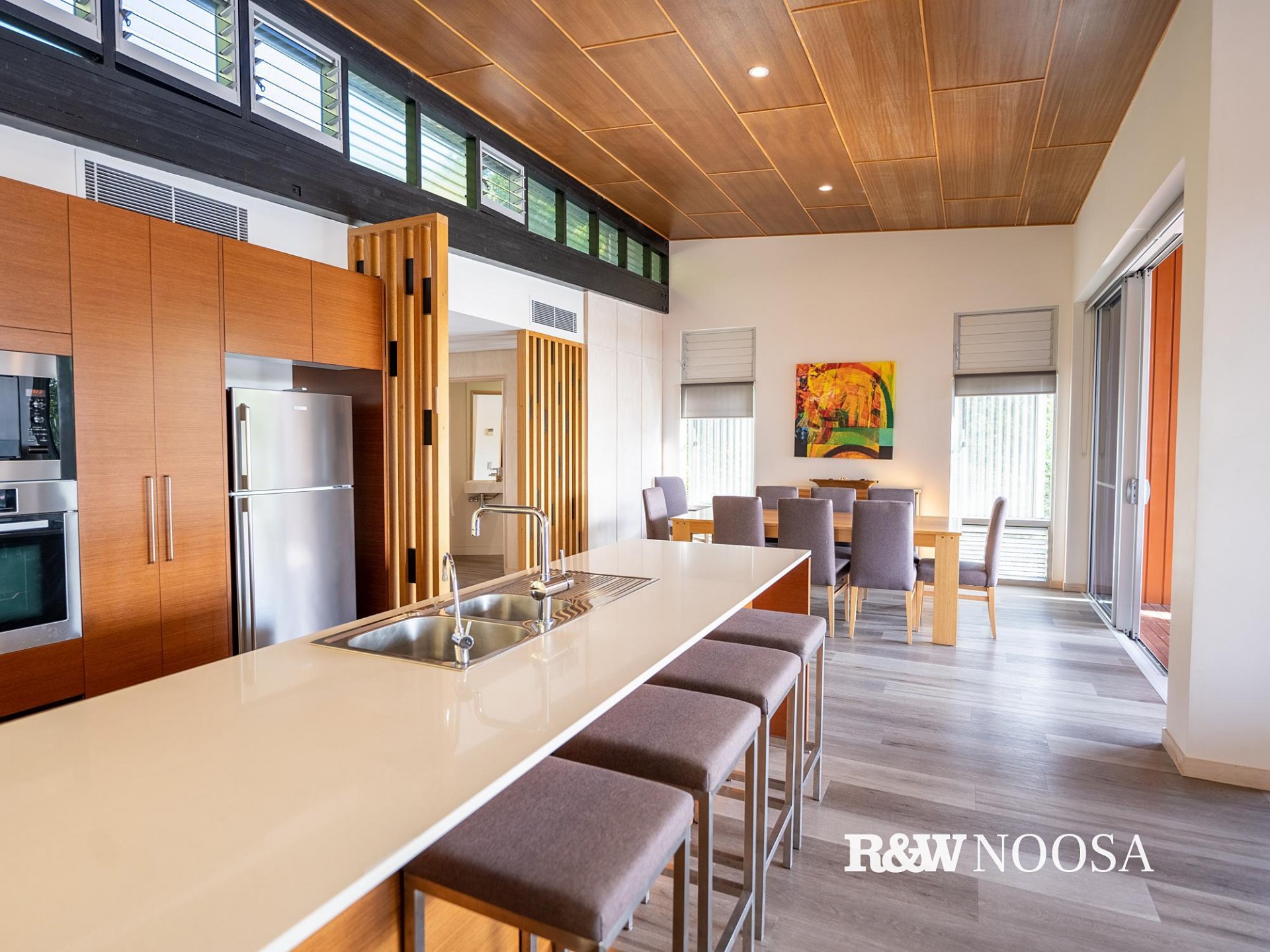 Situated next to Noosa's National Park and overlooking beautiful Laguna Bay this exclusive extra-large four bedroom, Peppers Tree Top Villa, offers a great investment opportunity with solid returns . The Villa has a sense of light and space and has an enviable, elevated corner position. Designed by award winning architect John Mainwaring, this three level holiday home blends naturally into the serenity of the rainforest canopy. Intuitive design, clever angles and luxury materials all combine to bringing the outside vista into your internal living space.