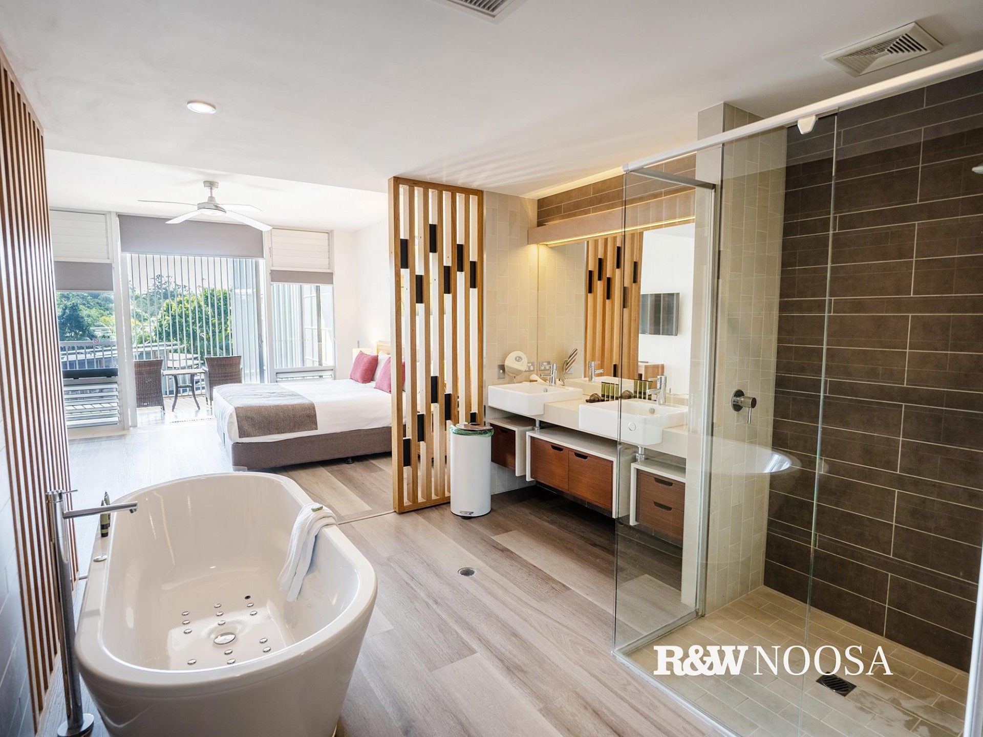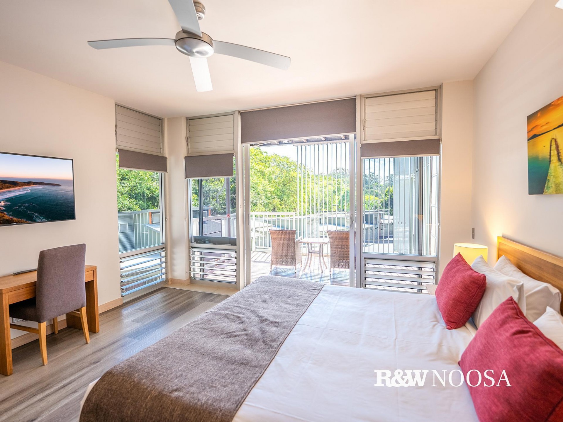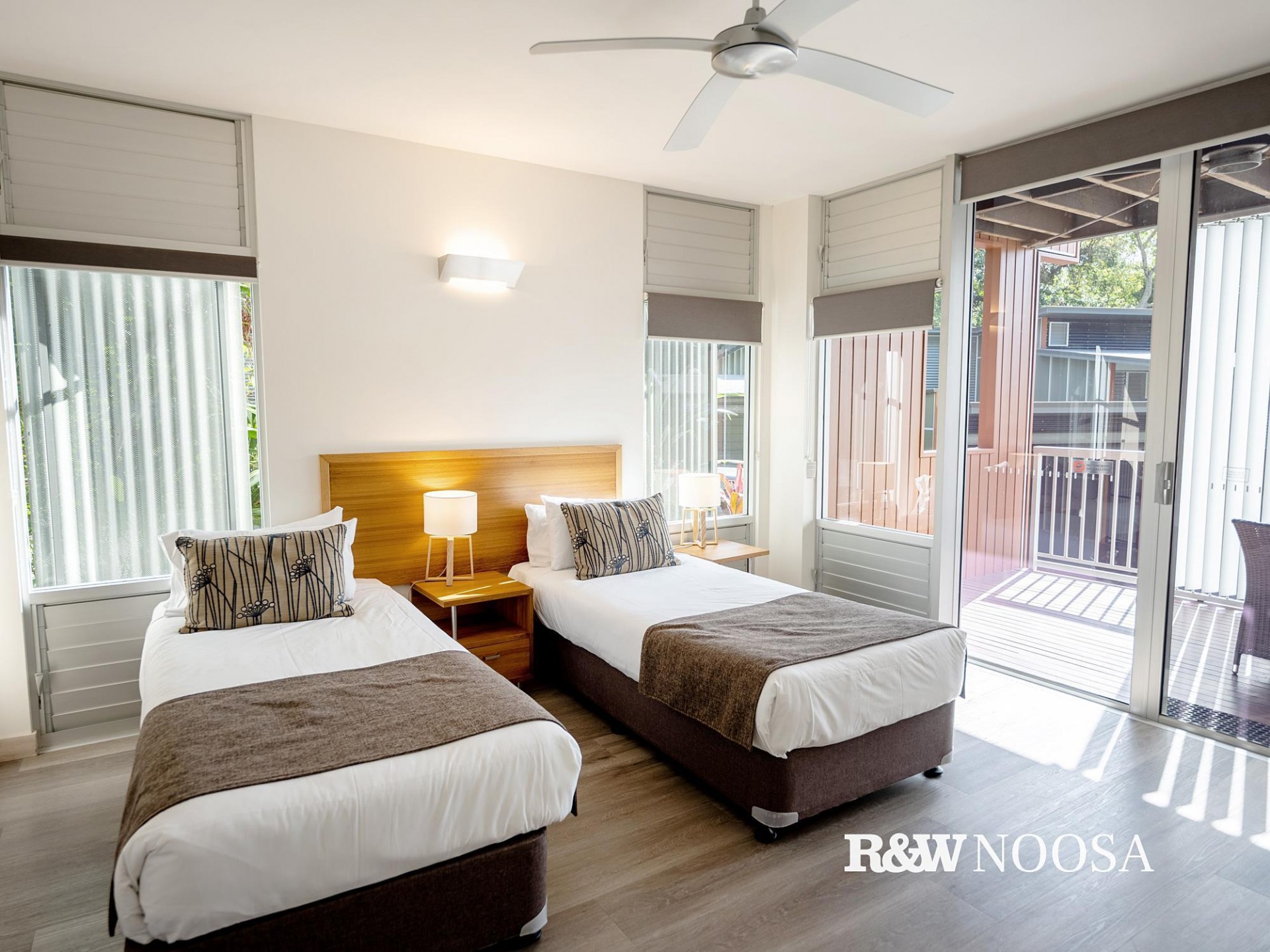 Situated next to Noosa's National Park and overlooking beautiful Laguna Bay this exclusive extra-large four bedroom, Peppers Tree Top Villa, offers a great investment opportunity with solid returns . The Villa has a sense of light and space and has an enviable, elevated corner position. Designed by award winning architect John Mainwaring, this three level holiday home blends naturally into the serenity of the rainforest canopy. Intuitive design, clever angles and luxury materials all combine to bringing the outside vista into your internal living space.
