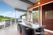 As you walk through the main entrance you are greeted with generous living spaces. Bi-fold doors open the entire width of the villa onto expanded decking showcasing the treetop view and ocean vista. The chef's kitchen with Miele appliances, granite bench-tops and warm wooden accents sits at the centre of this open-plan living and dining zone.