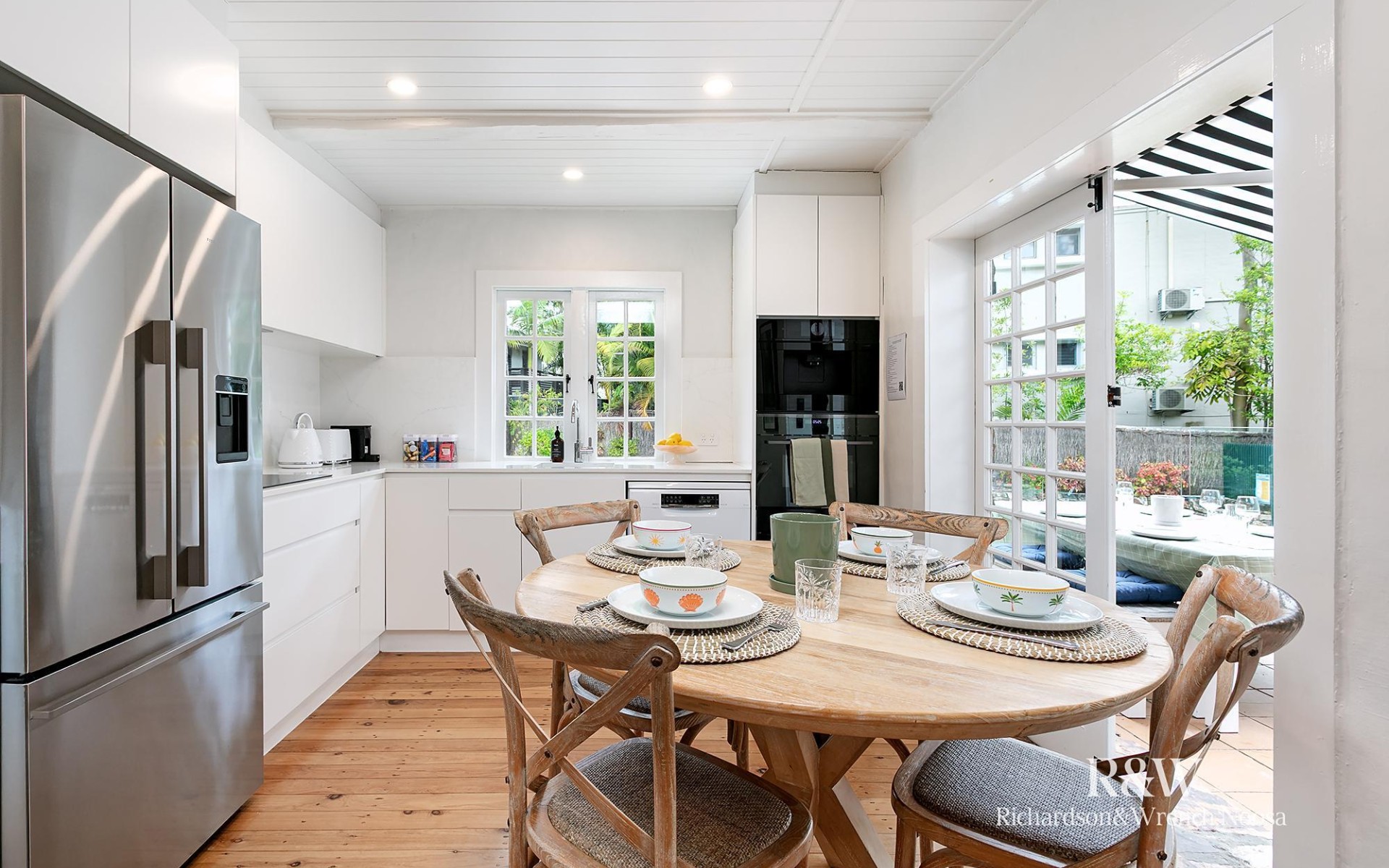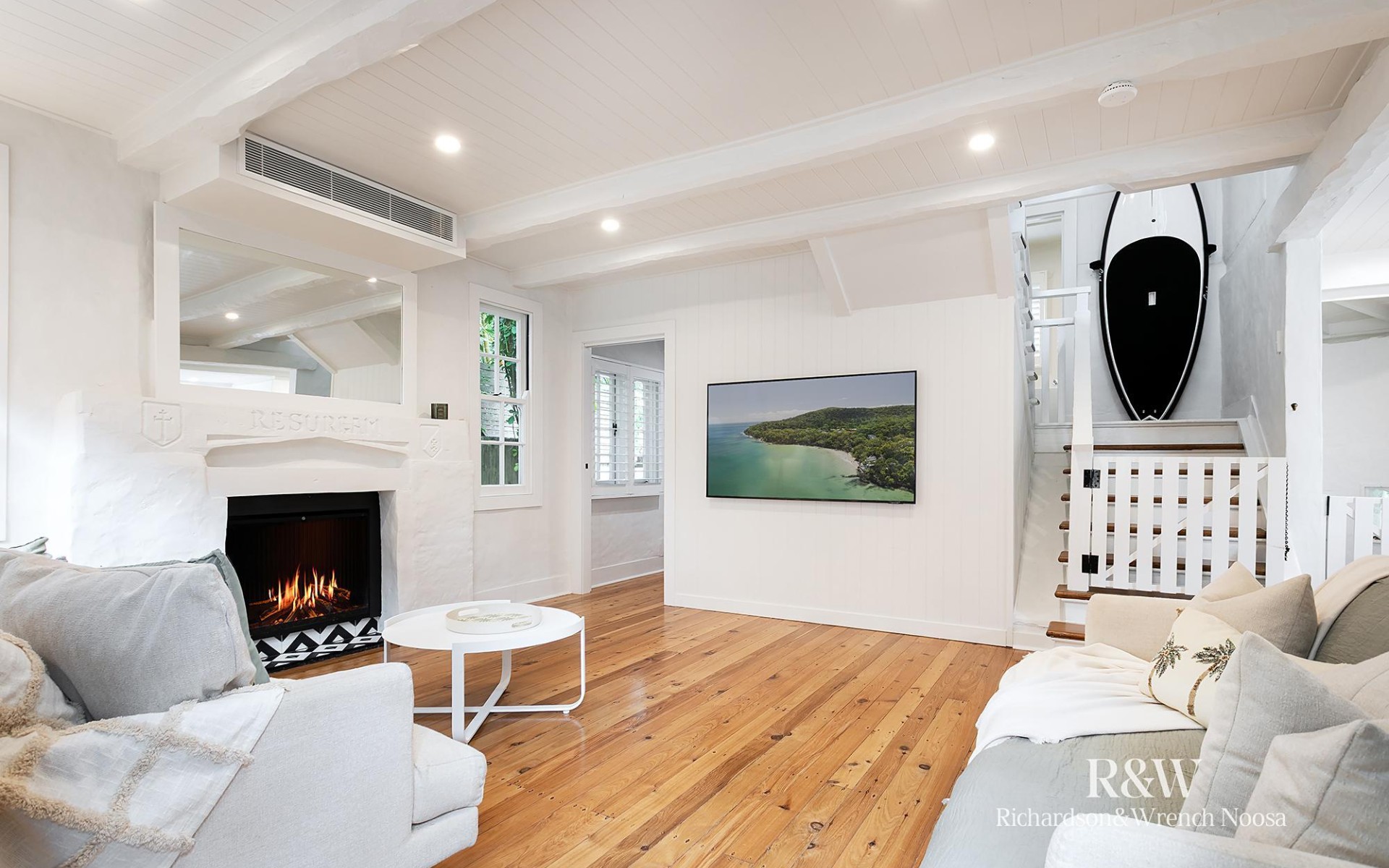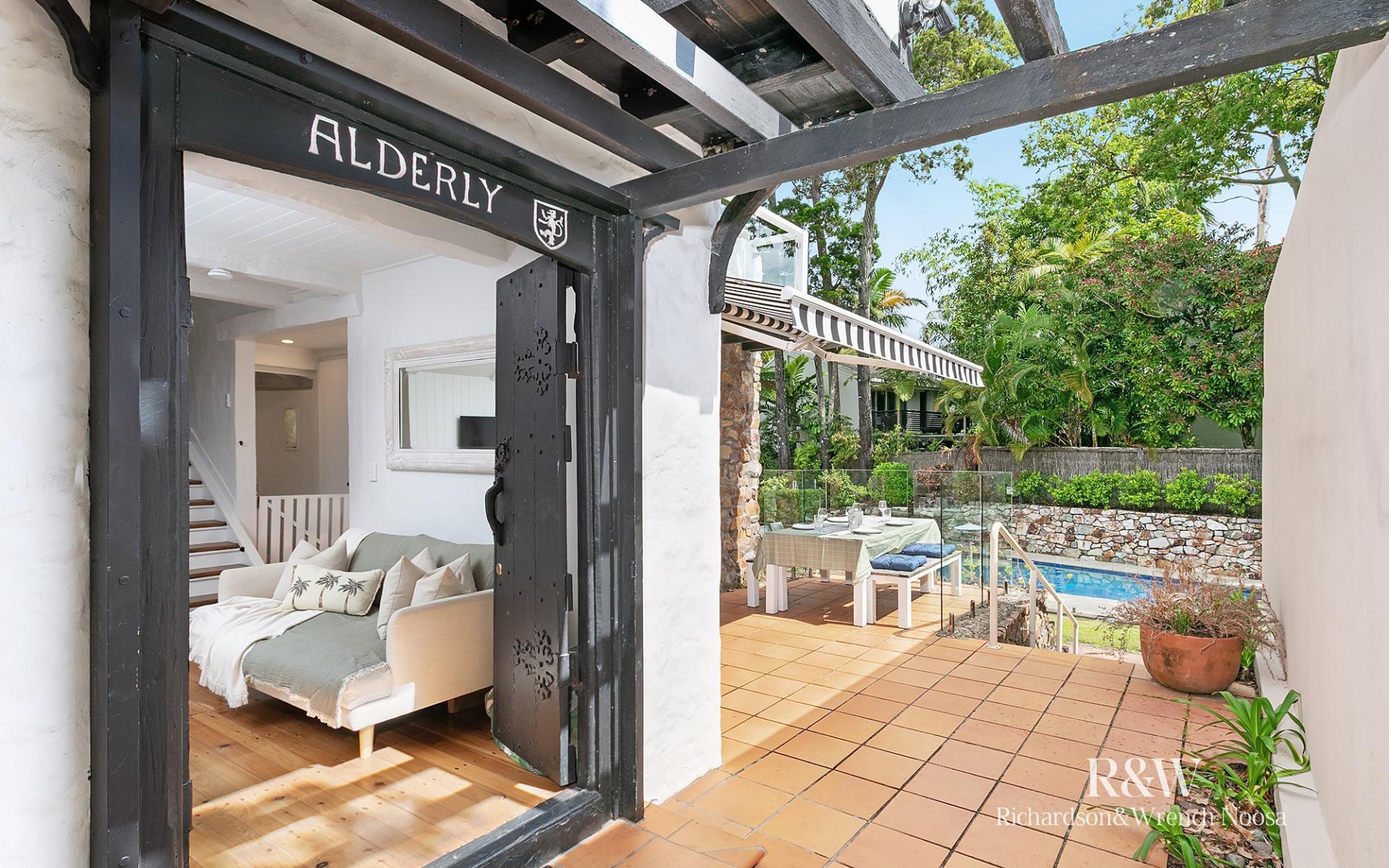 Upon entry, you will marvel at the interior's timber floors, whitewashed beamed ceilings and cosy fireplace that speak to the home's heritage. The light-filled living area flows freely into the kitchen and dining space, where modern appliances and sleek kitchen cabinetry are all yours, along with double doors that lead out to the shaded poolside alfresco terrace.