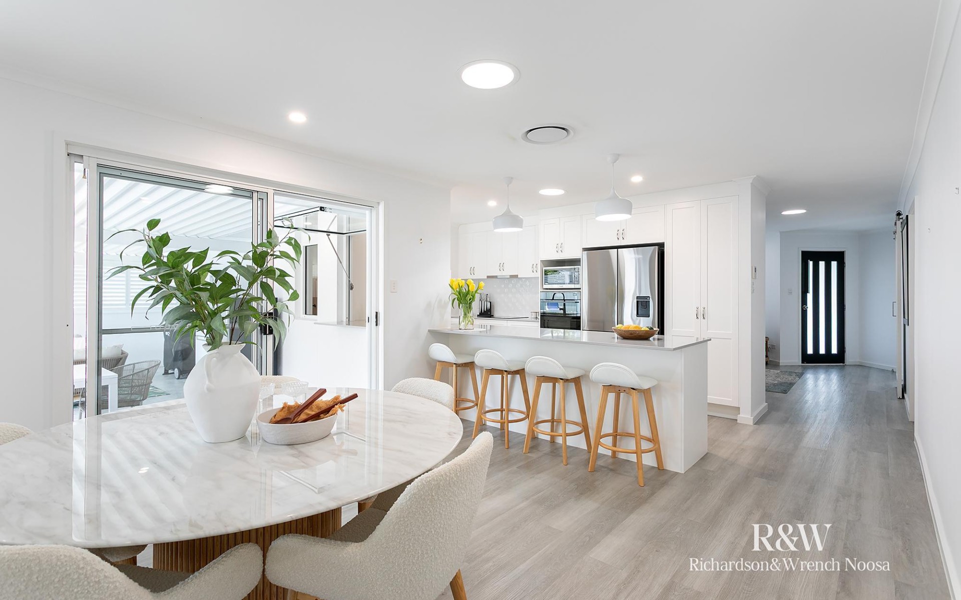 Inside, the stylish kitchen is a true highlight, featuring brand new top-of-the-line Electrolux appliances, an induction cooktop, Bosch dishwasher, and clever servery window to the patio, making indoor-outdoor entertaining effortless. With abundant storage, quality flooring, ducted air conditioning plus a split system, comfort is assured year-round.
