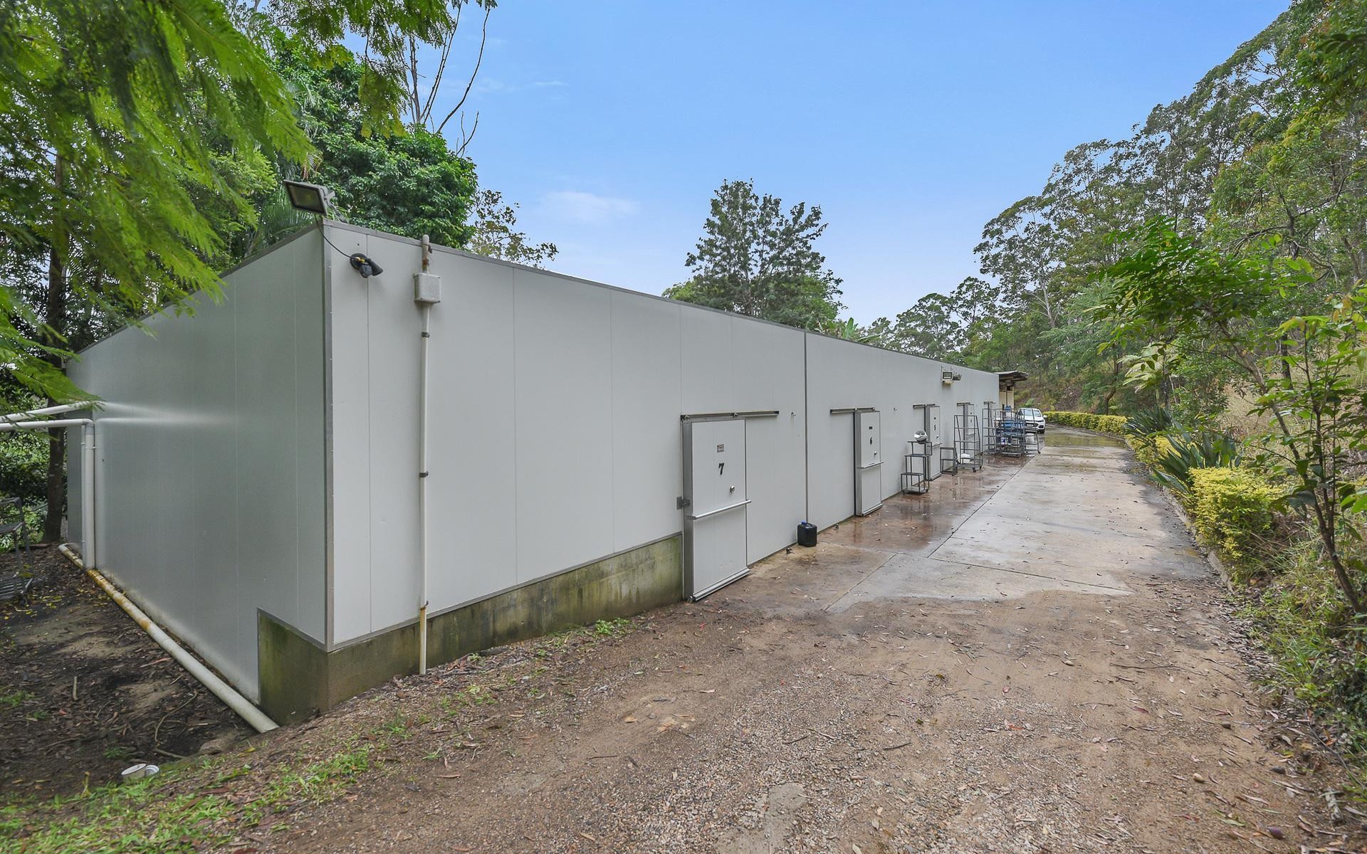 There is a large powered shed that is fitted out for mushroom growing plus a self-contained unit rented at $300 per week. A second large shed, currently empty offers various possibilities including leasing storage space (for additional income) or operating a workshop/home business.