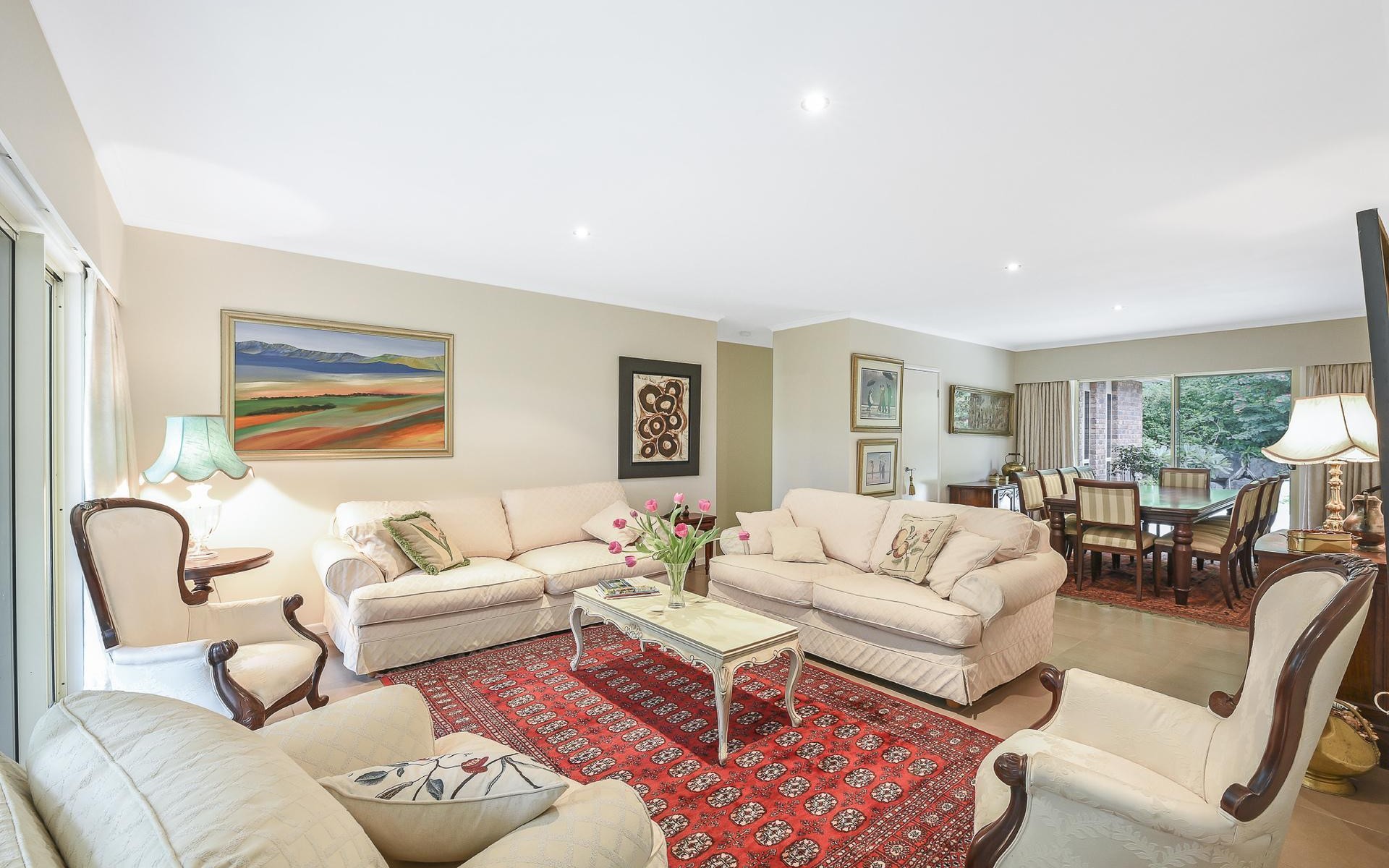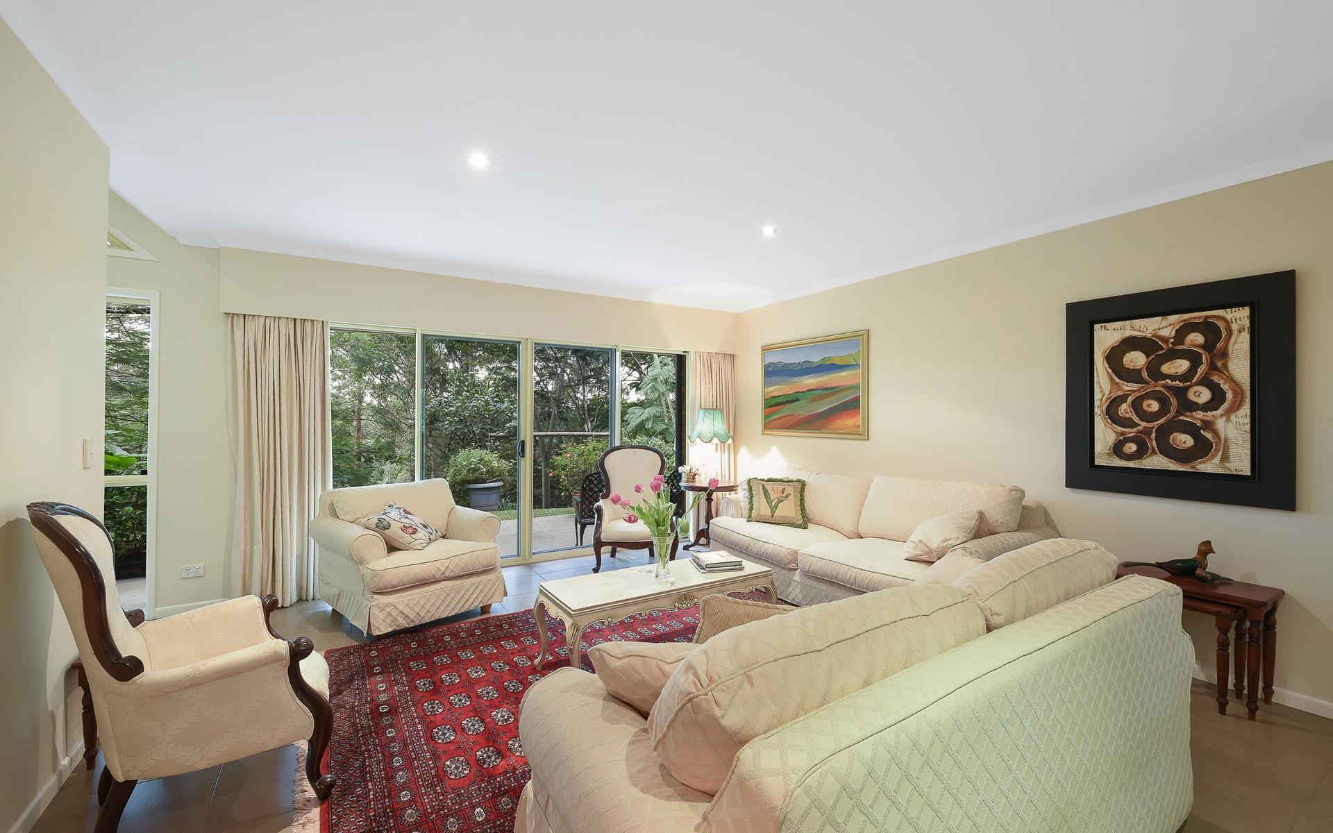 The grounds are lush, with well-established vegetation and mature trees; and the home has been strategically positioned on the most elevated part of the block to maximise privacy, views, and aspect.