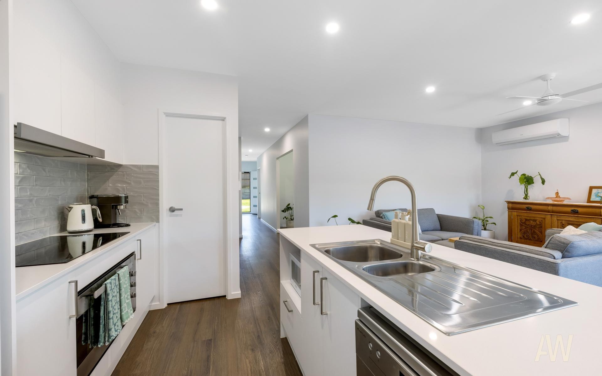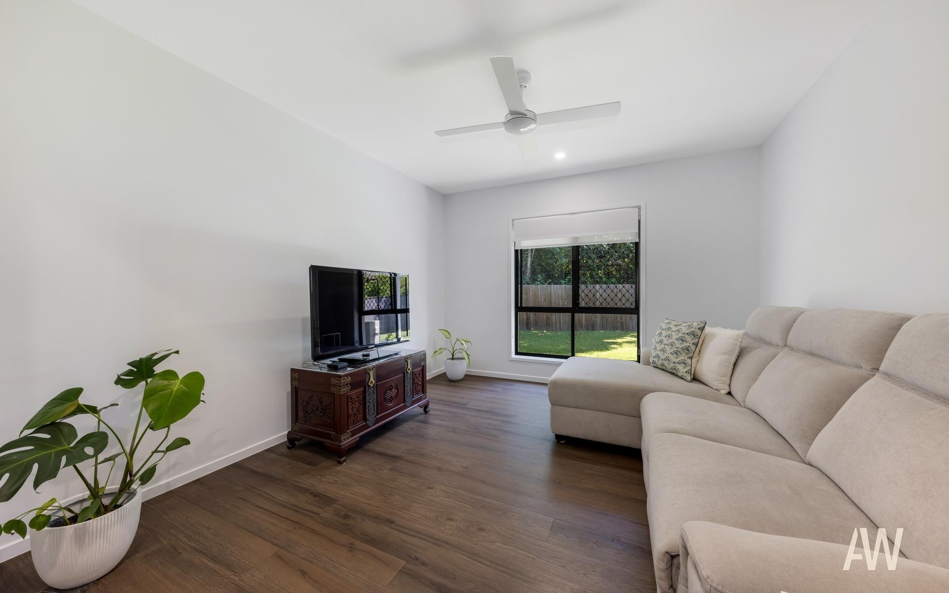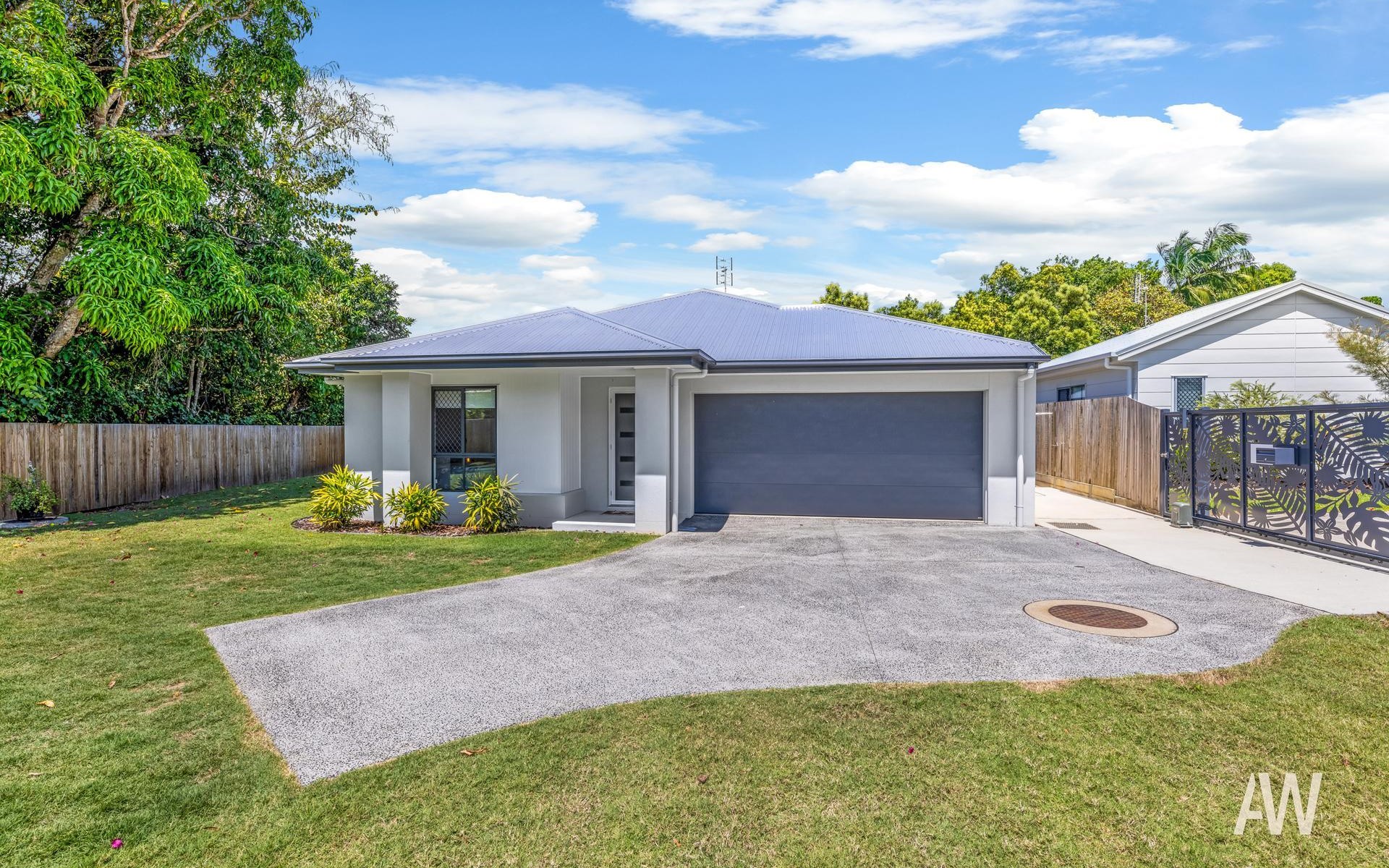 Amber Werchon Property presents to the market, 77 Palmwoods-Montville Road, Palmwoods: this 2022-built family home tucked well away from the road at the end of a private access lane, on a fully fenced, flat, 801m2 block, offers low-maintenance living that is both stylish and convenient.