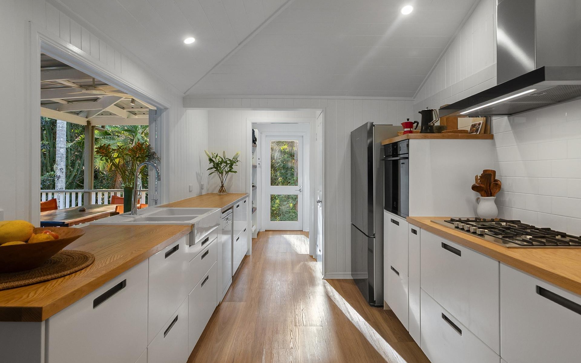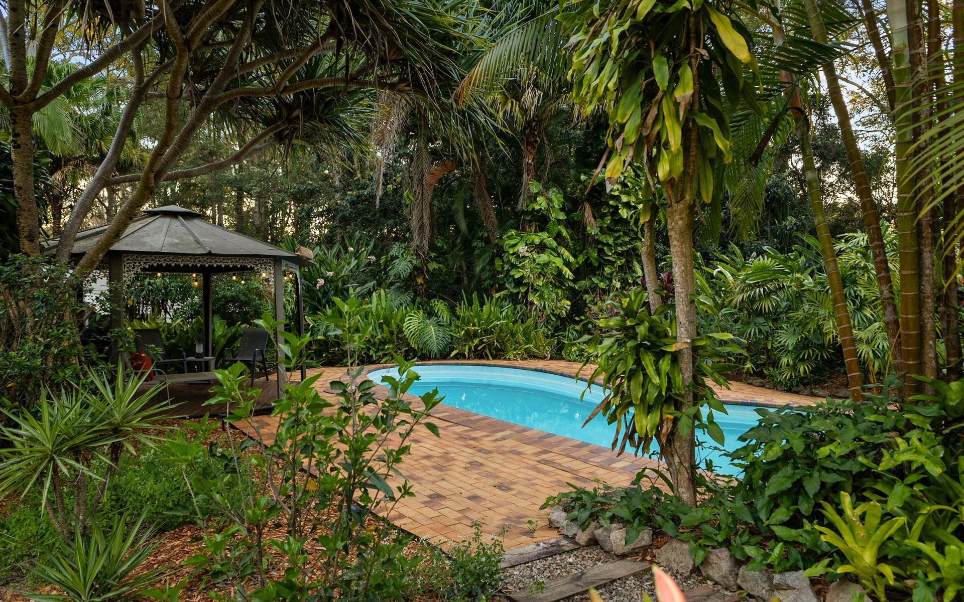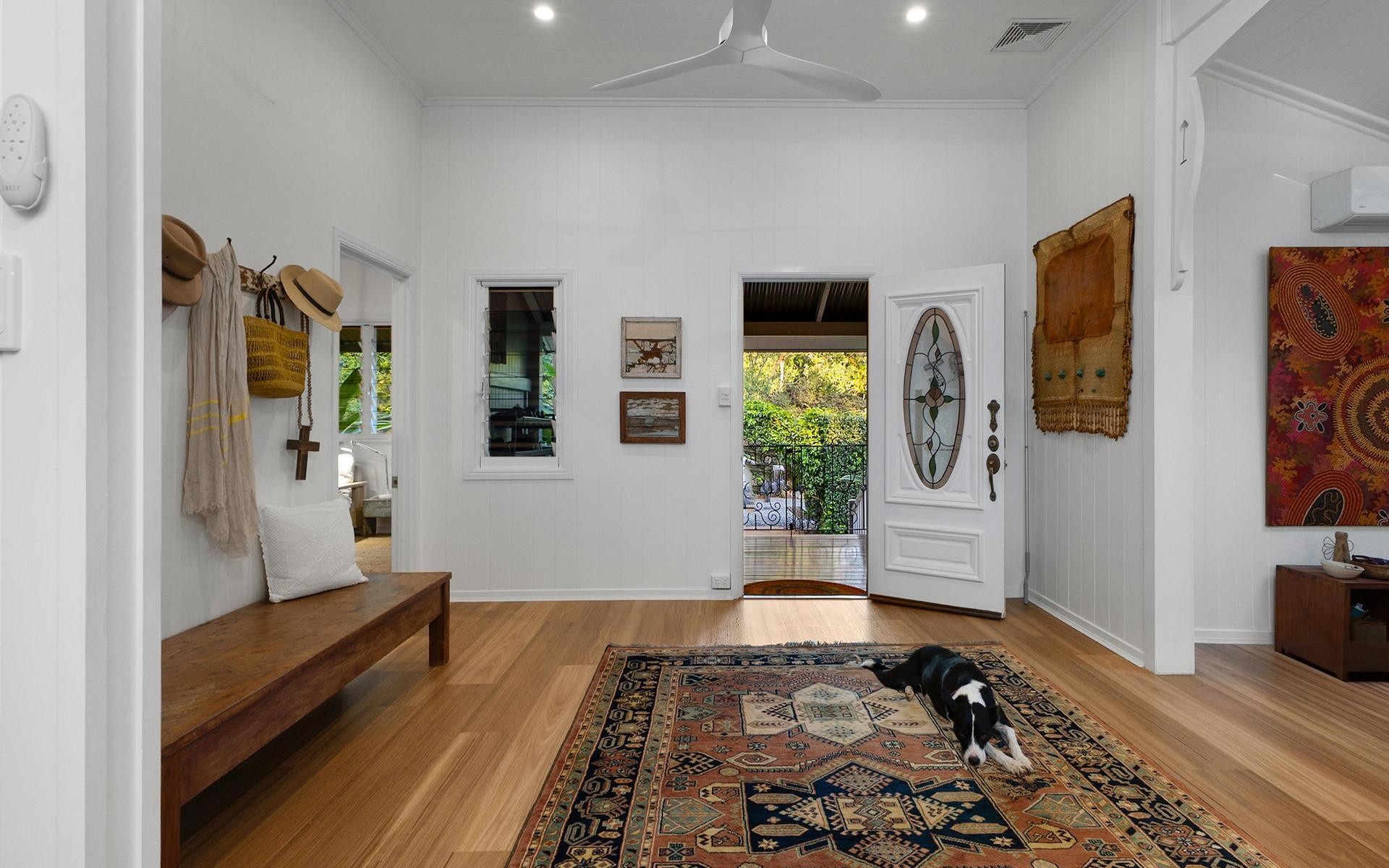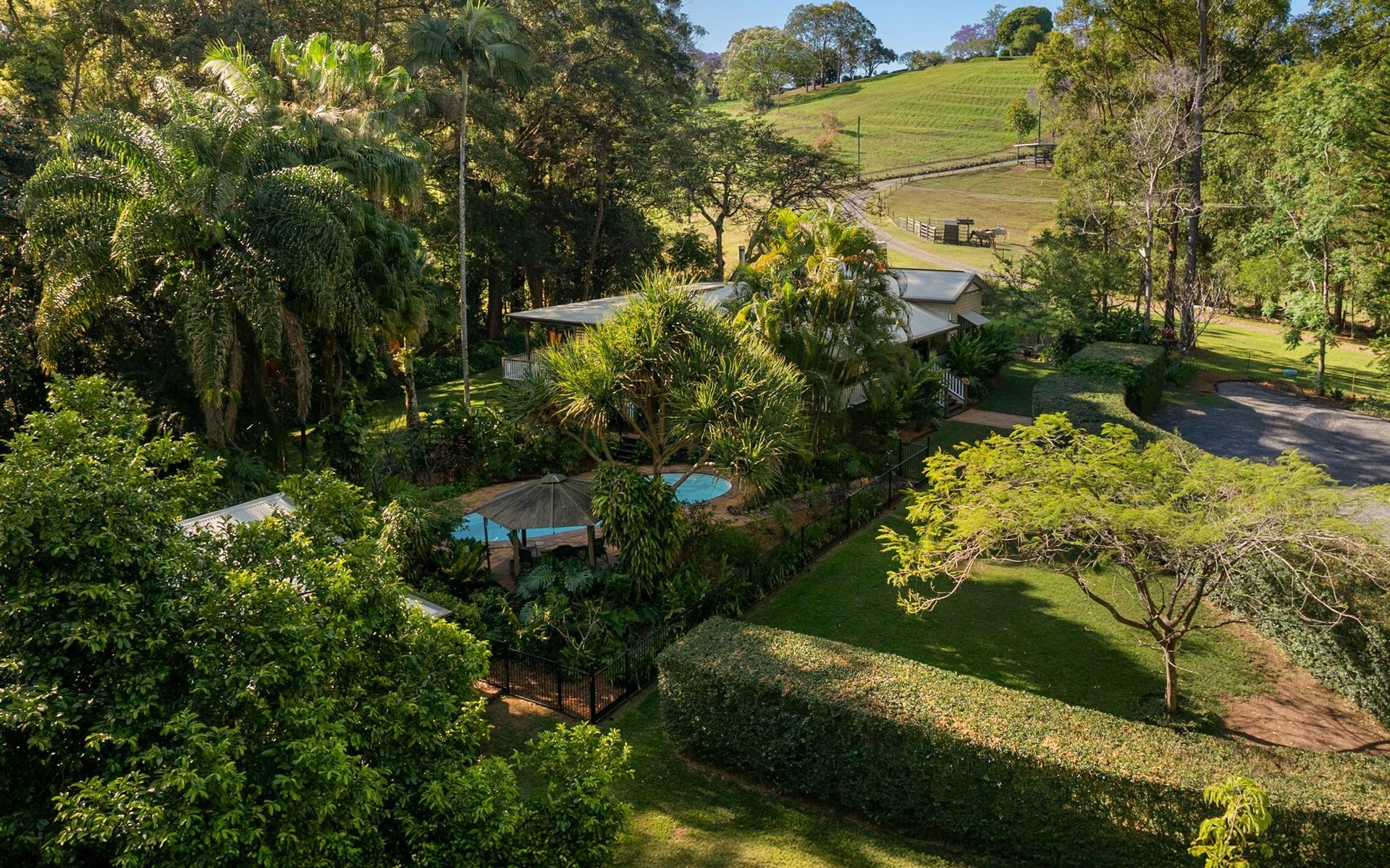 The gardens are lush and abundant, featuring fruit trees including bananas, mulberries, mangoes, lemons, and citrus, as well as an array of visiting native birds. The tropical landscaping enhances privacy and creates a peaceful, natural backdrop for the home and pool. Every detail has been thoughtfully nurtured, reflecting care, quality, and an appreciation for the relaxed rhythm of hinterland living.