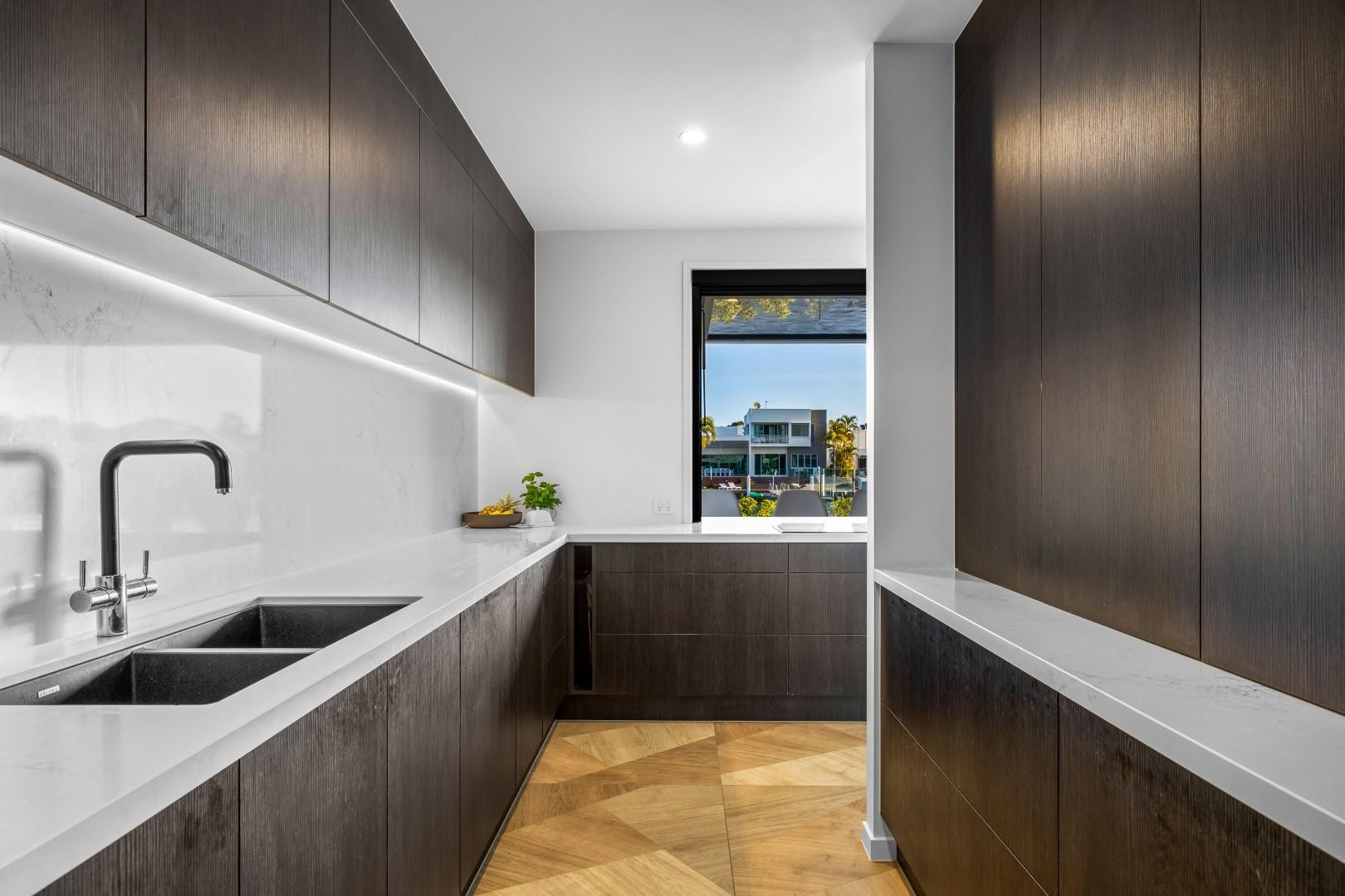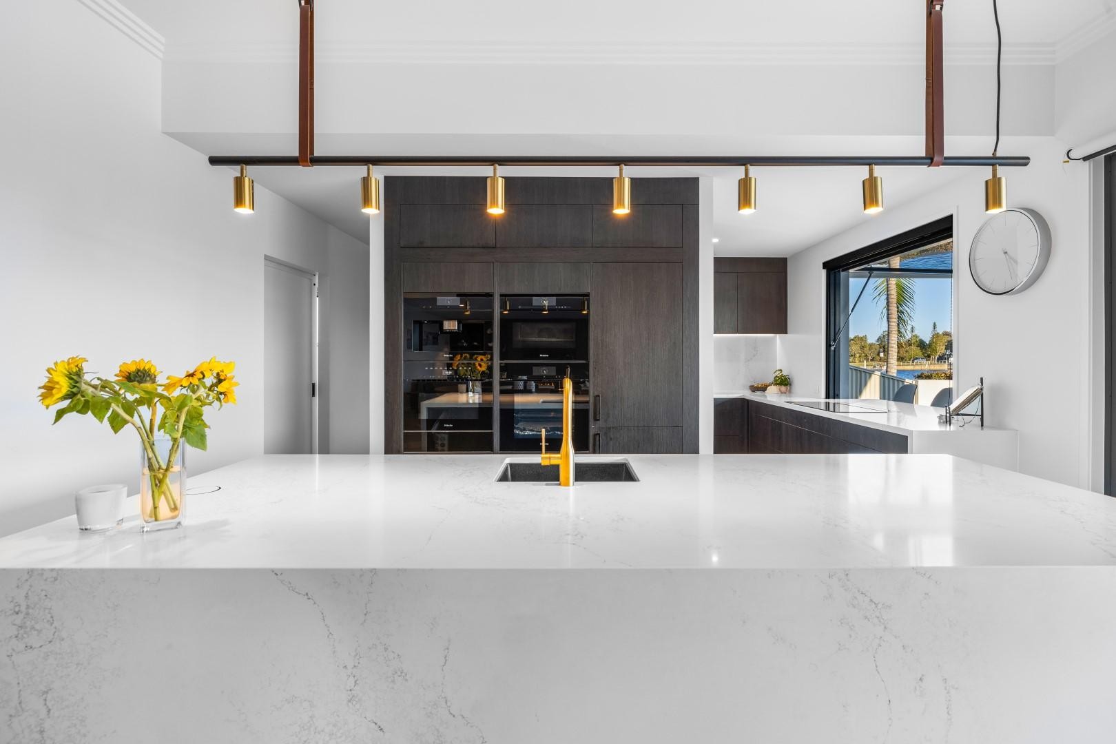 Wander through to the heart of the home and you'll find a kitchen that makes entertaining effortless and everyday life feel a little more luxurious. Featuring two Miele dishwashers, two integrated fridges, multiple ovens including steam and convection options, Miele induction cooktop, and even a built-in coffee machine - every appliance is premium, and every surface beautifully finished with 40mm Empira White Caesarstone. Thoughtful features like the boiling water tap and servery window to the alfresco enhance the kitchen's functionality, creating an ideal space for cooking and hosting.
