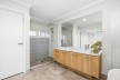 Accommodation is thoughtfully designed across the upper level, comprising four bedrooms including a spacious master suite. The master offers a generous walk-in robe, a beautifully appointed ensuite with freestanding bath and double vanity, and calming water glimpses that enhance the sense of retreat. The three additional bedrooms are all well proportioned, two of which include walk-in robes, and are serviced by a main bathroom with a separate powder room. A walk-in linen further adds to the home's practical storage.