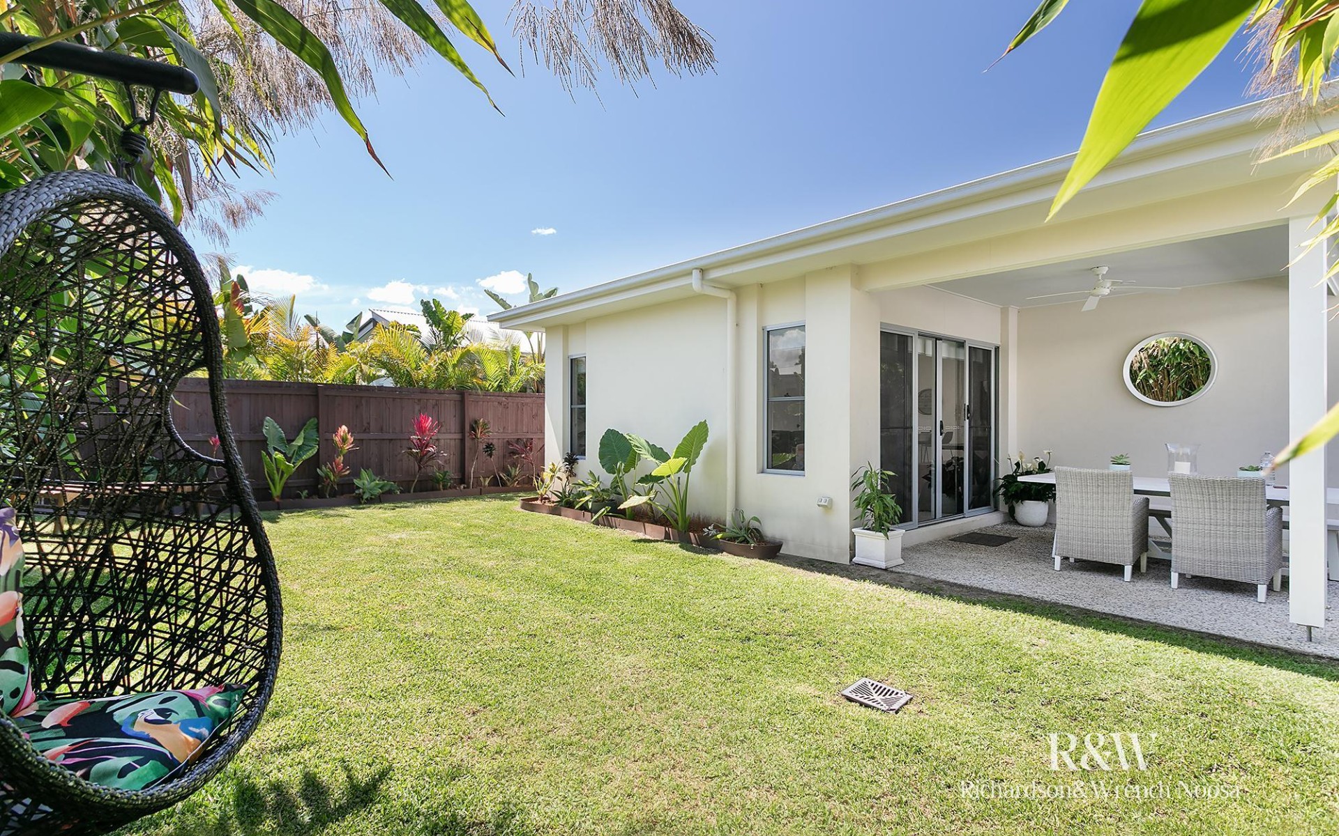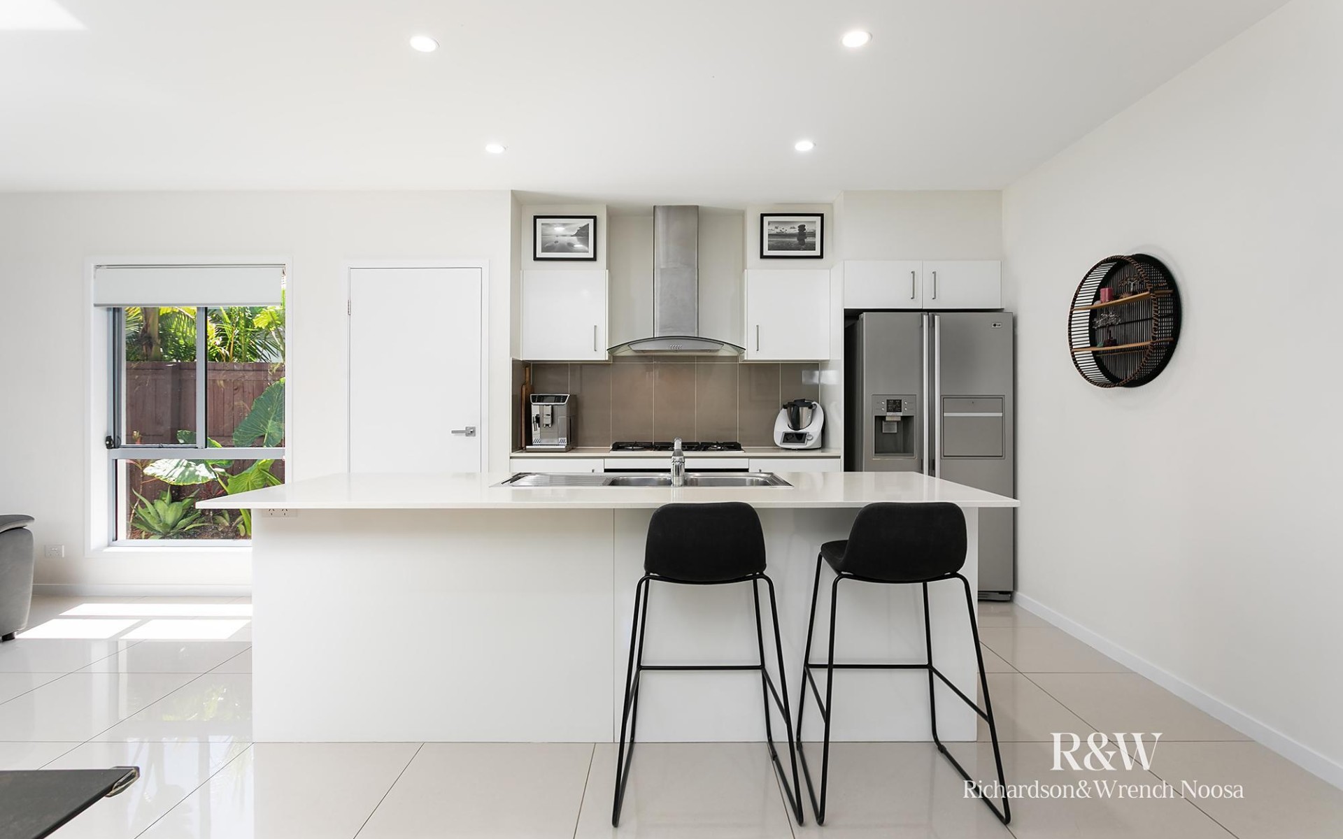 Step inside and discover a bright, airy interior finished in a fresh neutral palette. The open-plan living, dining and kitchen area flows seamlessly to the covered alfresco, creating an inviting space for everyday living and effortless entertaining. The contemporary kitchen features stone benchtops, upgraded gas stove and oven, and stainless steel appliances, all framed by garden views that bring the outside in.
