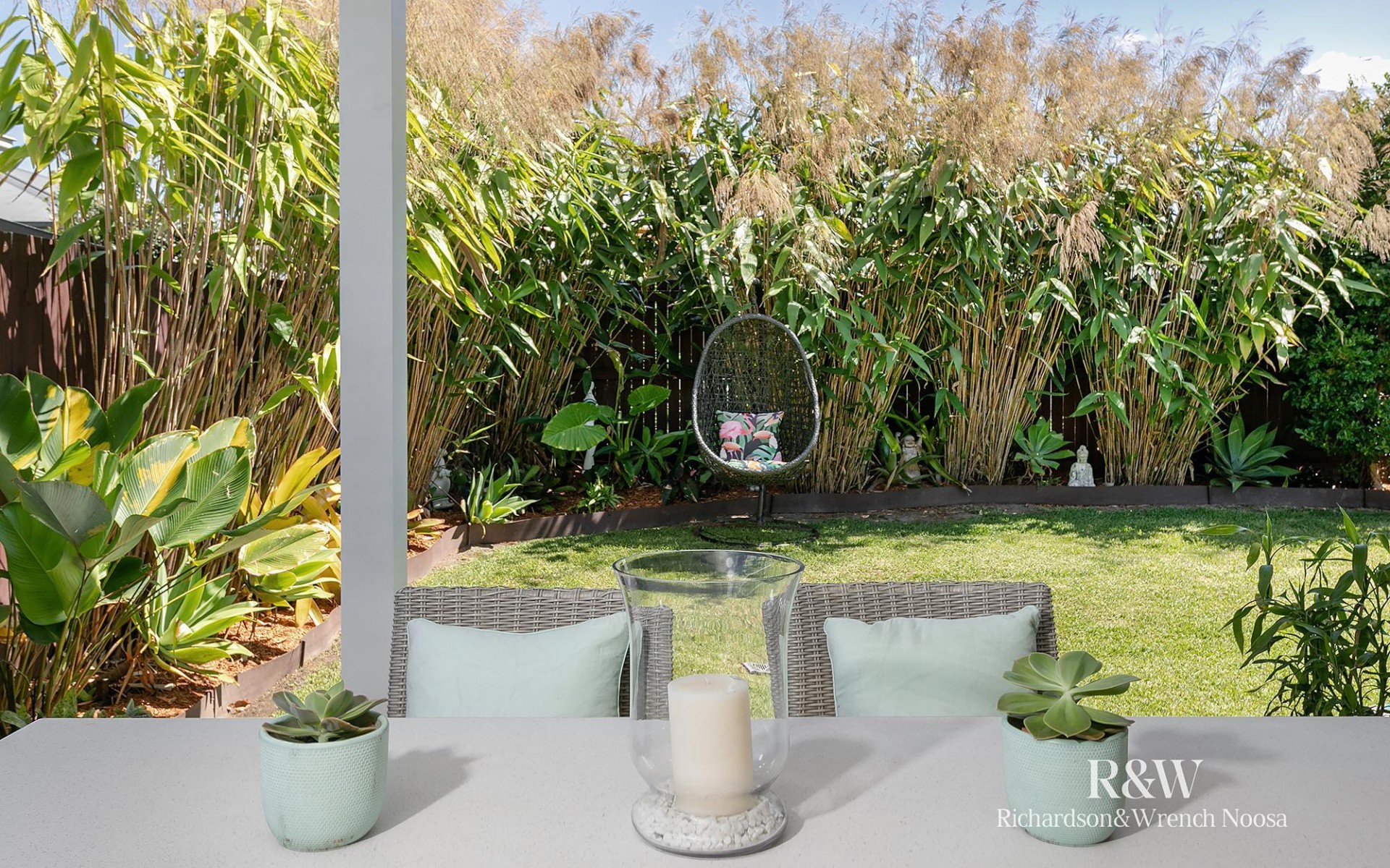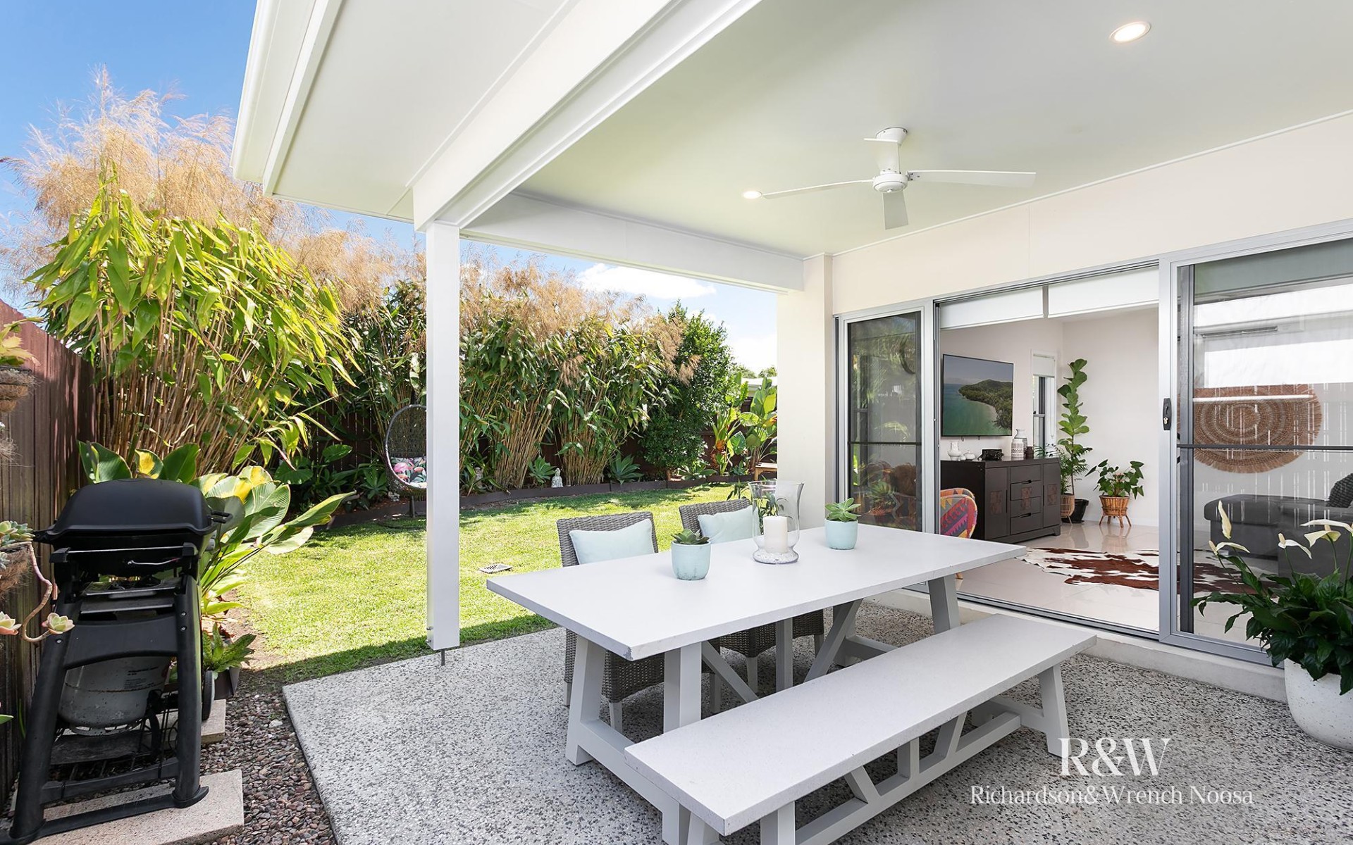 • Covered alfresco area overlooking a spacious backyard with room for a pool
