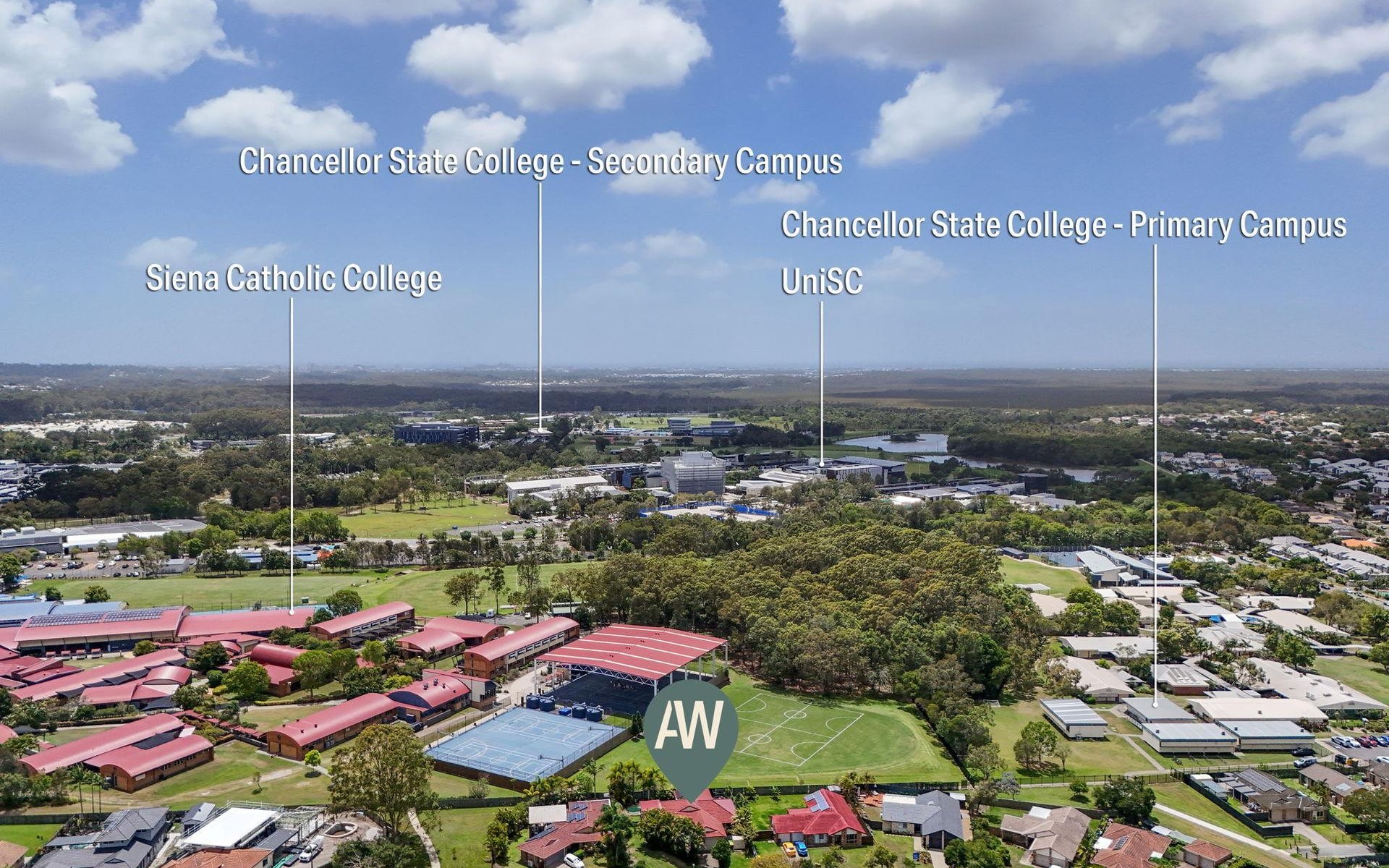 Situated on a generous 701-square-metre allotment, the home also enjoys exceptional proximity to local amenities. Windmill Park, with its ten acres of open space, is just a one-minute stroll away, while Chancellor Schools and Sienna Catholic College are a mere three-minute walk from the front door.