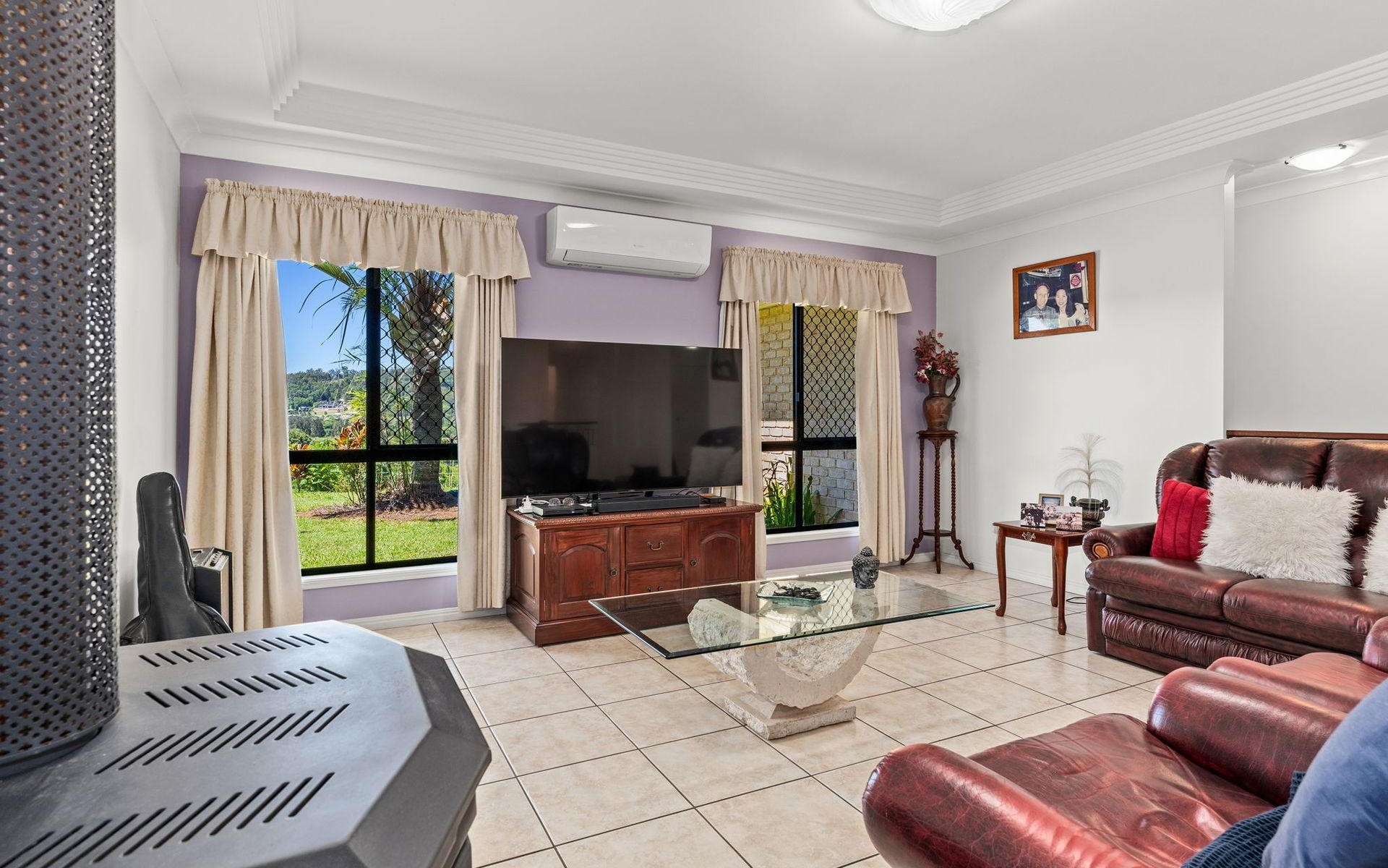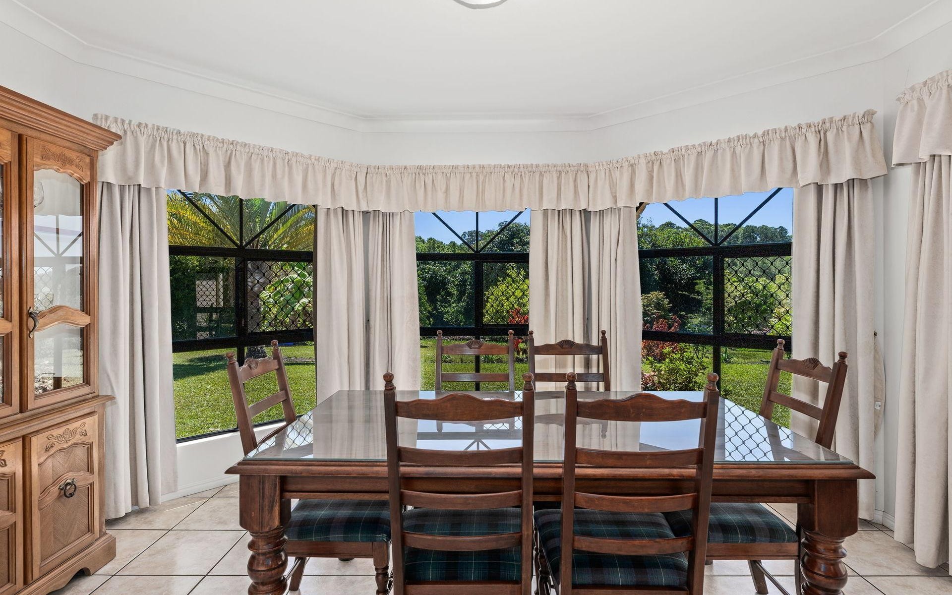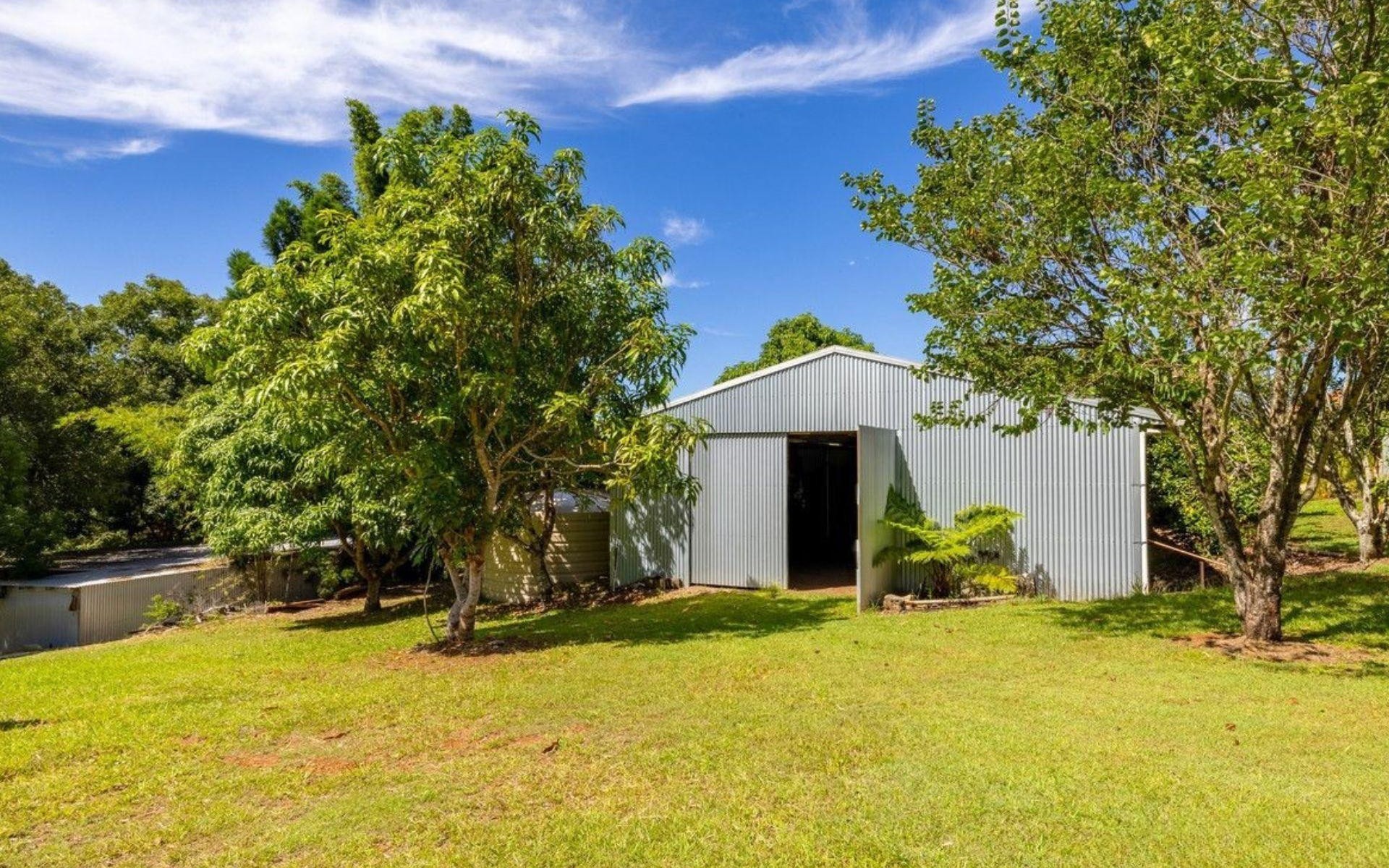 Sustainability and self-sufficiency are further supported by town water, four rainwater tanks (three with pumps), a spring-fed dam at the front of the property, a second dam in the middle, and a picturesque rainforest pocket to the rear. Numerous established fruit trees add to the property's charm and practicality.