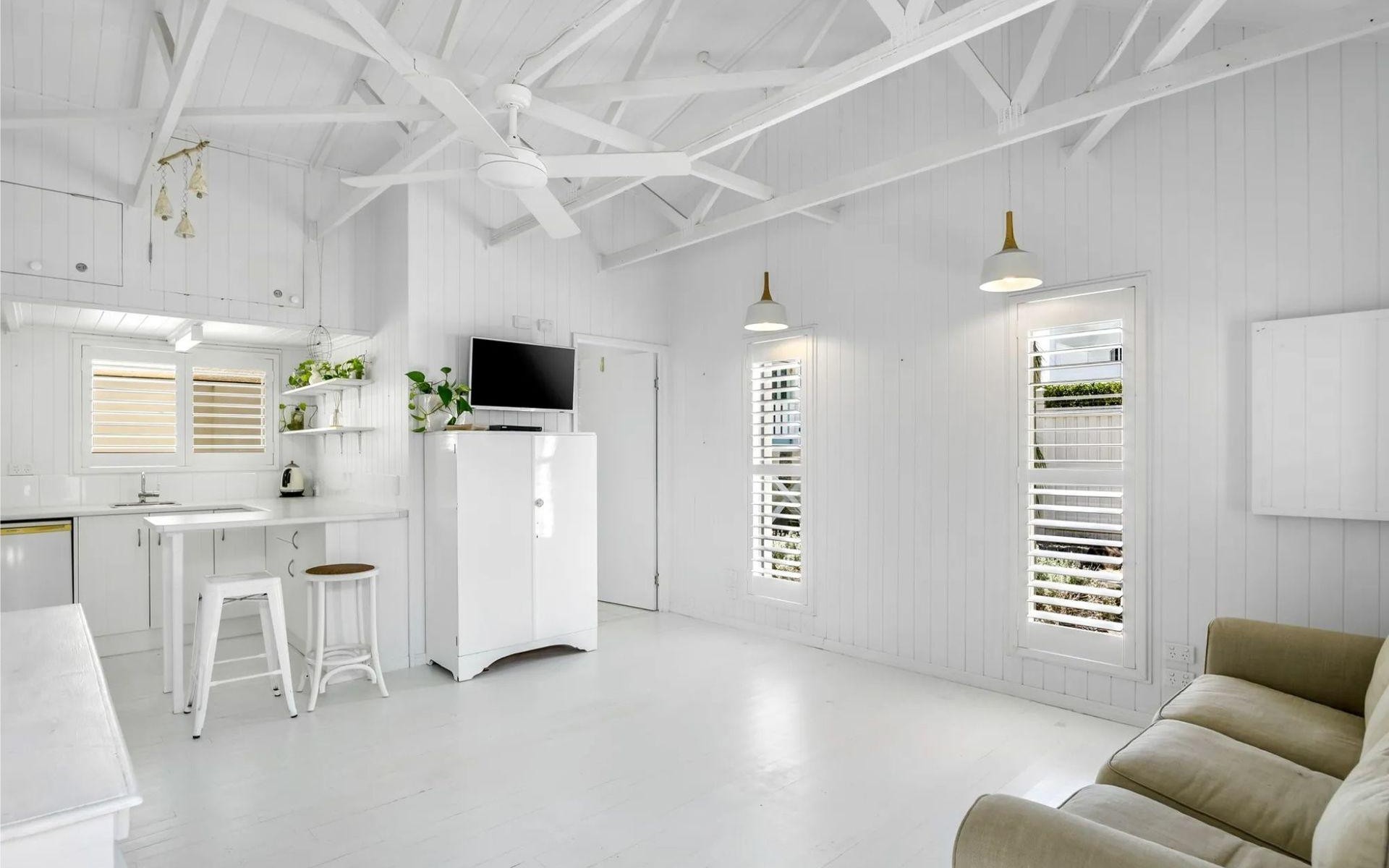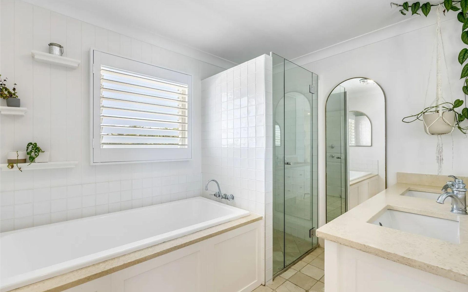 Inside, crisp white walls and warm timber floors create a welcoming ambience, flowing effortlessly through both formal and casual living areas. The home office on the ground floor provides a practical space for working from home, while an additional bathroom with shower and vanity caters to poolside living or visiting guests.