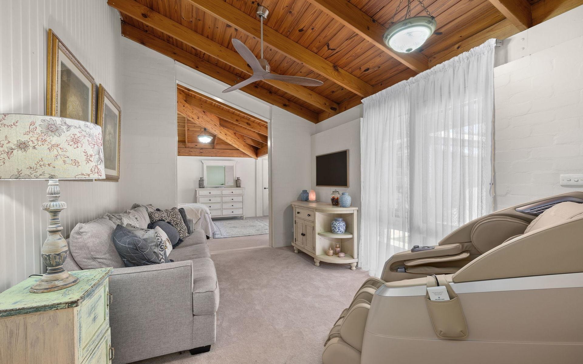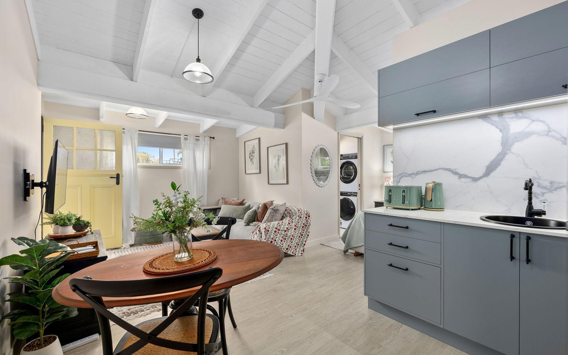 The floor plan of the home facilitates excellent separation with Garden Gate Cottage, the fully self-contained studio boasting its own external access, providing possibilities for intergenerational living for extended family members, home business/salon, or income stream via short or long-term rental.