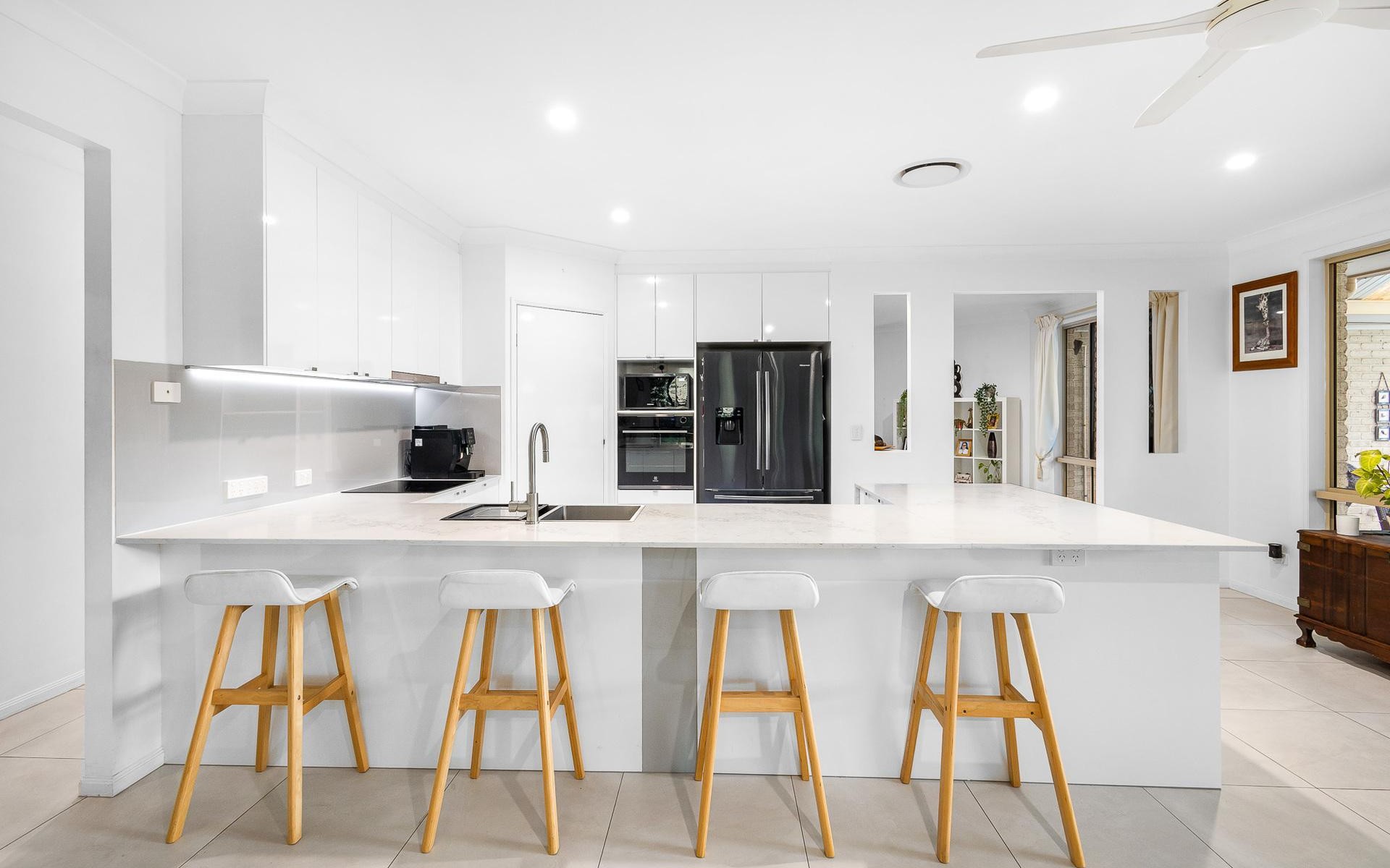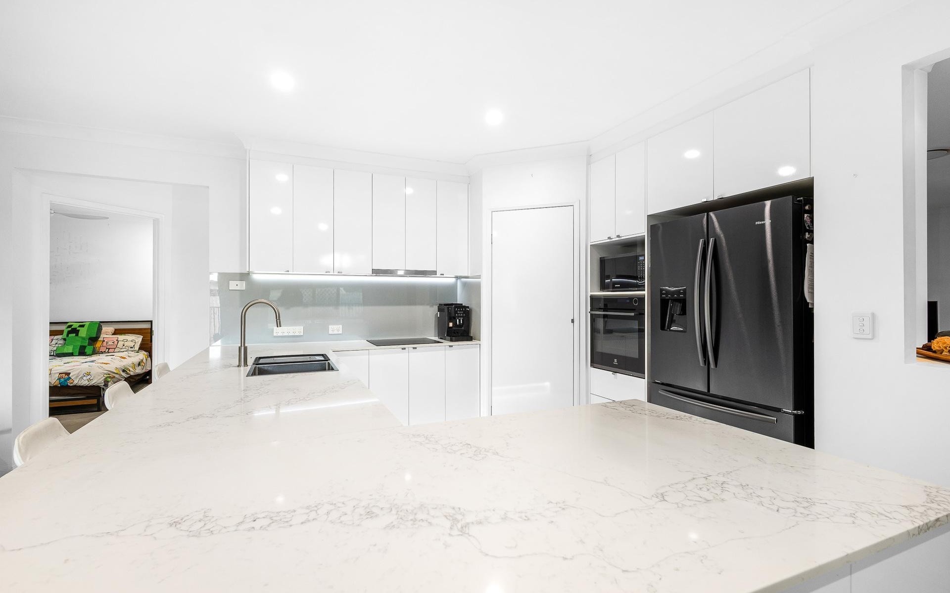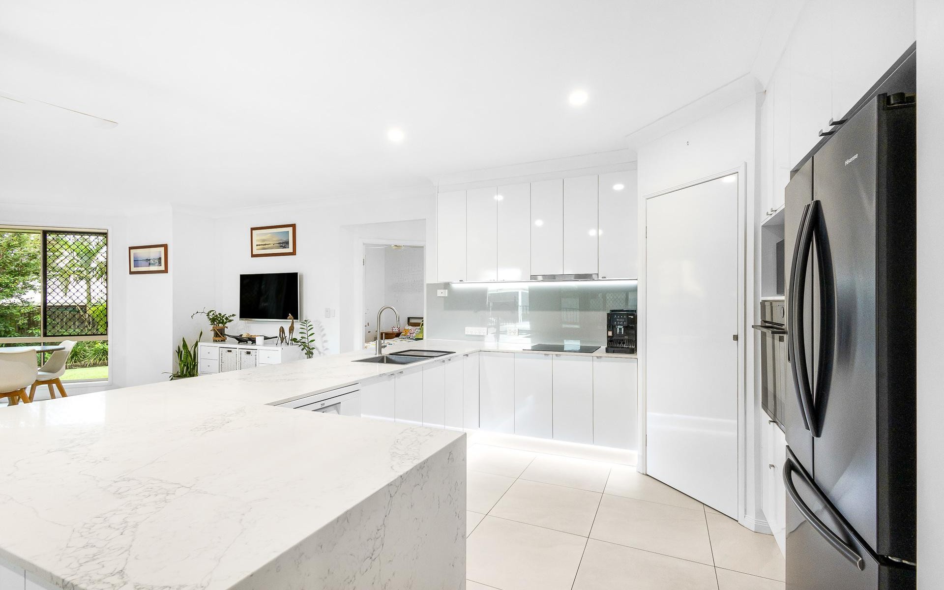 At the heart of the home is the newly renovated kitchen - a standout space finished with sleek stone benchtops and a stunning waterfall edge. Designed with both style and practicality in mind, it features extensive storage, an induction cooktop and a self-cleaning oven. Flowing directly into the surrounding living and dining spaces, it's a kitchen that encourages connection and easy entertaining.