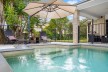 Outdoors, the home continues to impress. A large covered alfresco area overlooks the sparkling in-ground pool and backyard, creating an inviting space for year-round entertaining. The swimming pool is equipped with heating and an expansive shade sail, making it ideal for all-season enjoyment, while the surrounding yard provides room for children and pets without the burden of high maintenance.