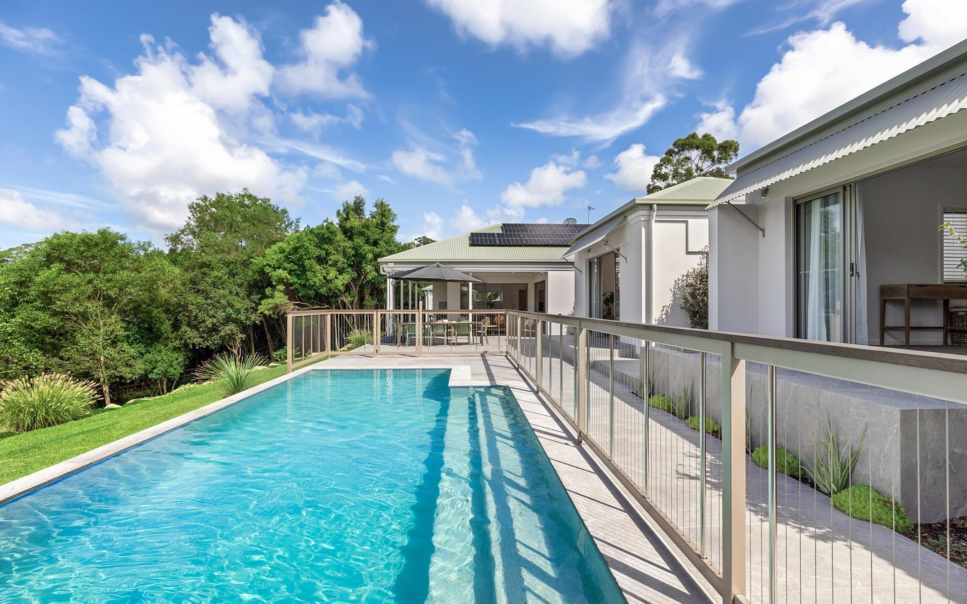 The home boasts new Daikin zoned ducted air conditioning, including a My Air+ module control that allows onsite and remote adjustments via an app. Outdoor living is elevated with an infinity-edge saltwater pool, covered living spaces including an open-air patio, and a poolside dining area complete with a built-in Beefeater Proline Grill.
