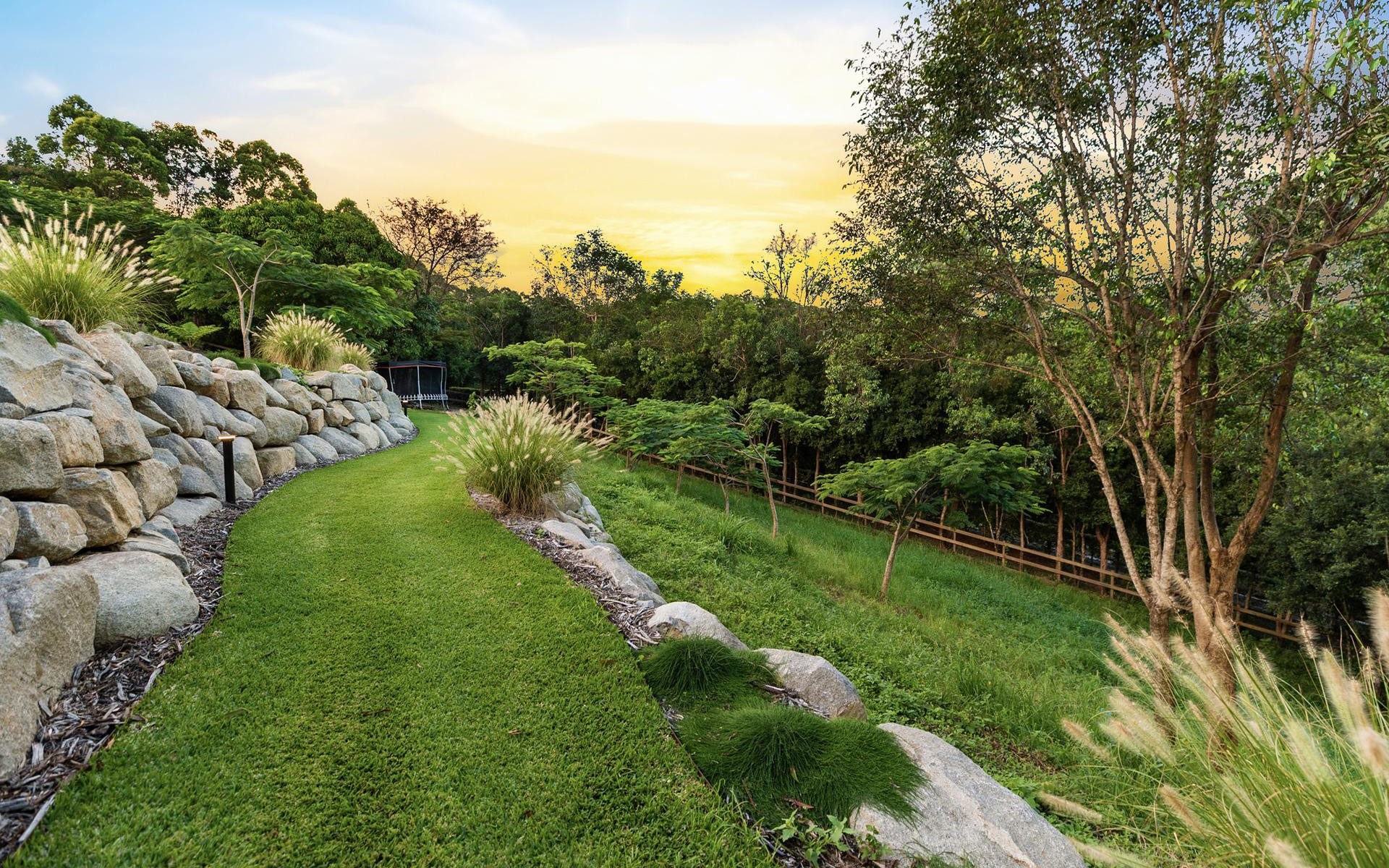 The property features an extensive redesign of gardens and terraces by Earth Creations, including feature lighting throughout the garden, a new timber fence with chain wire, and a new Hunter Wi-Fi Hydrawise irrigation system for efficient water management, controllable both at home and remotely via an app.