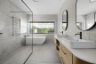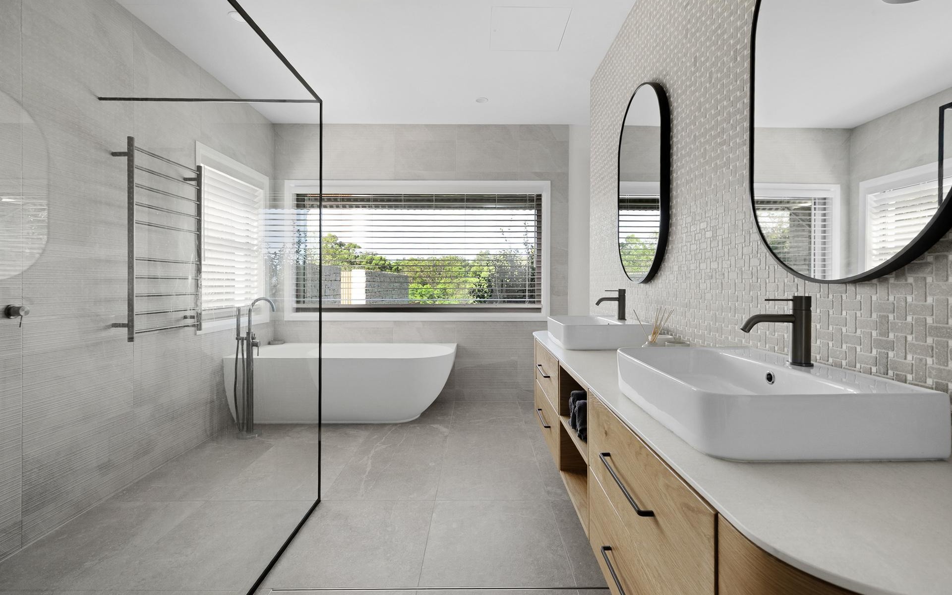 The master bedroom is a haven of luxury, enriched with an indulgent ensuite that includes a 1750mm Kaskade Stone Lillie bath and Nero Mecca tapware. Four additional bedrooms, one of which is ensuited, along with a main bathroom, are located in a separate wing, ensuring privacy and comfort for all residents.